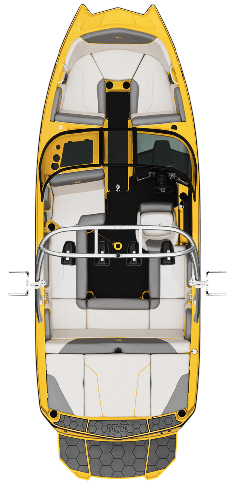 Катер имеет узкий корпус и небольшой салон. Странно, но развесовка 20-ти футового NXT такая, что при 4-х пассажирах в салоне нос катера очень сильно задирается без видимых оснований.