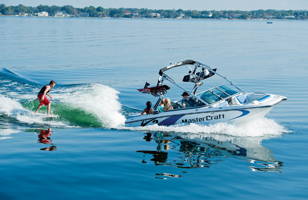 Mastercraft X2 универсальный катер самого высокого уровня. Хотя воднолыжники будут восторгаться отличным слаломом за X2, эта лодка может предложить вейкбордерам и вейксерферам балластную систему 410 кг, а также систему регулировки волны Surf Tabs. С помощью них вы сможете настраивать любые волны.