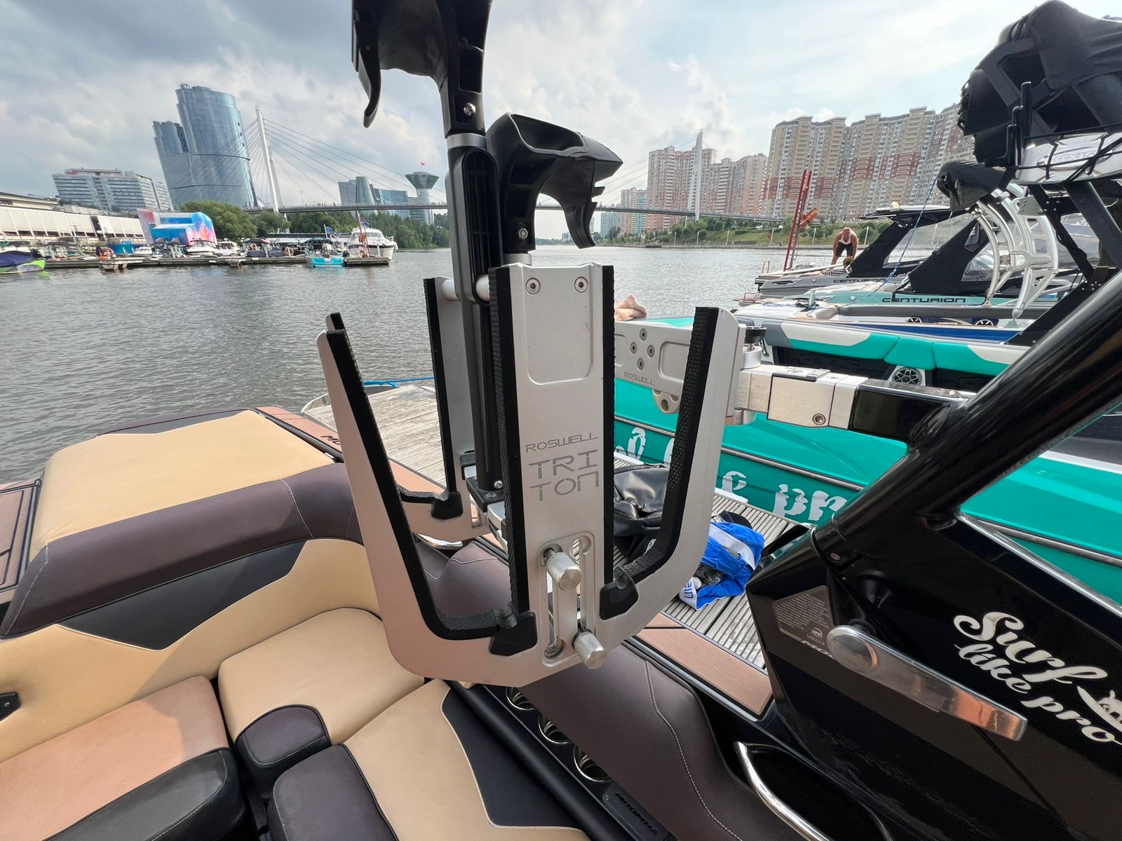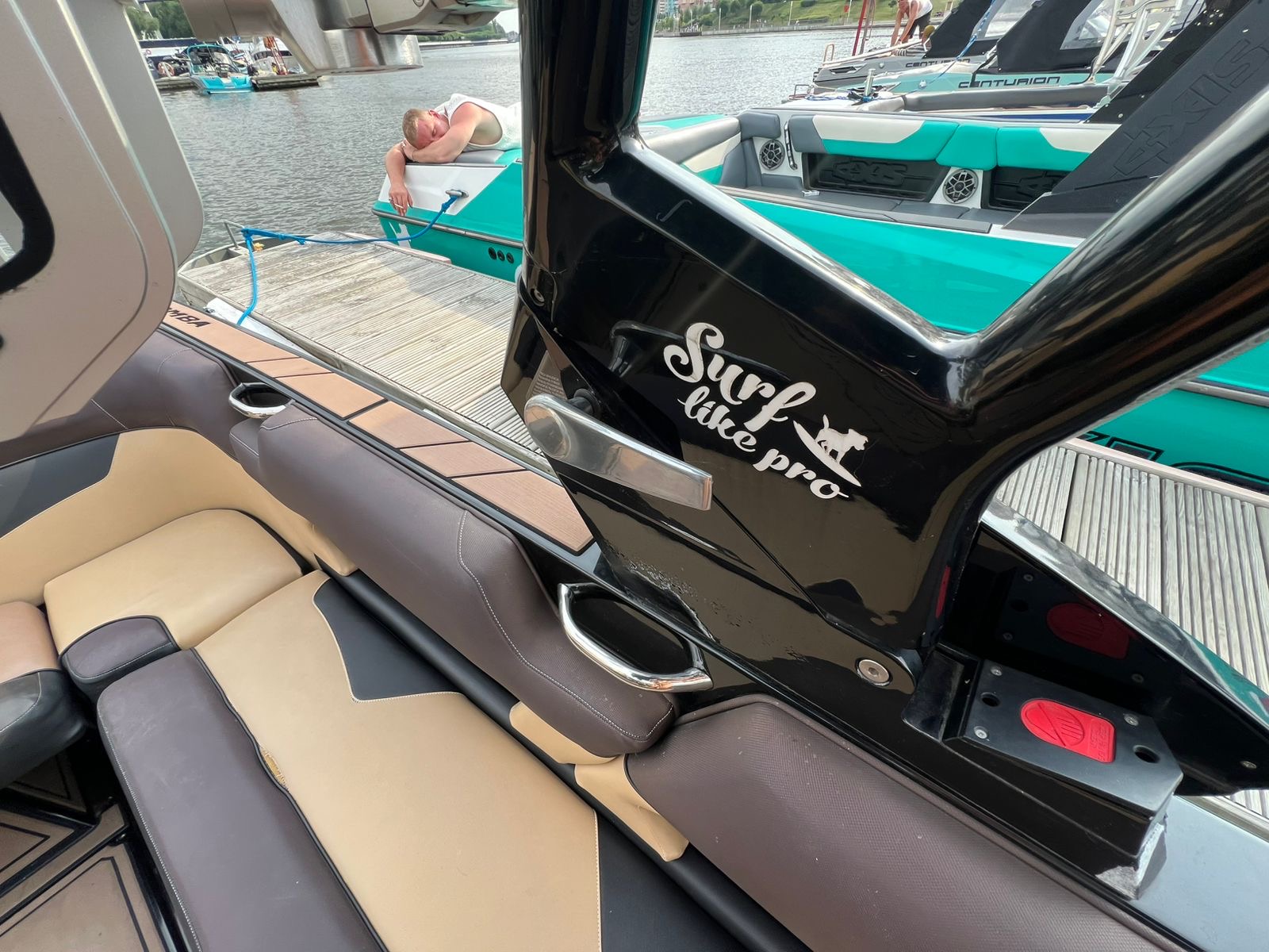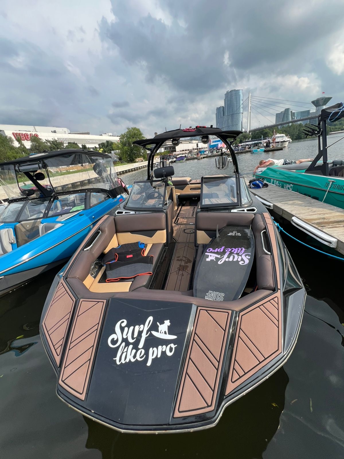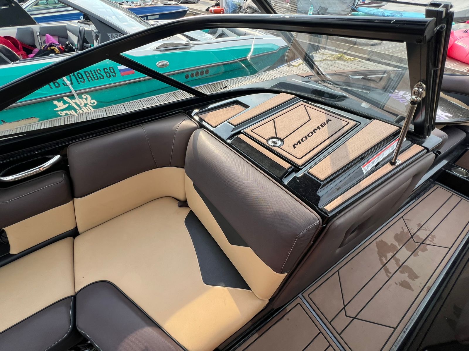 | 25-ти футовый флагман Moomba Boats в максимальной комплектации. Мощный надежный двигатель 450 л/с, серф-система с двойными пластинами и скоростной балластной системой, автоматическая настройка волны, серф-выхлоп, кормовые складные сиденья, 2000 кг. стандартного балласта, электропривод сиденья водителя, мощная акустика с колонками на тауэре 10 дюймов, ступенька на транцевой плите, выносной пульт управления акустикой. | |