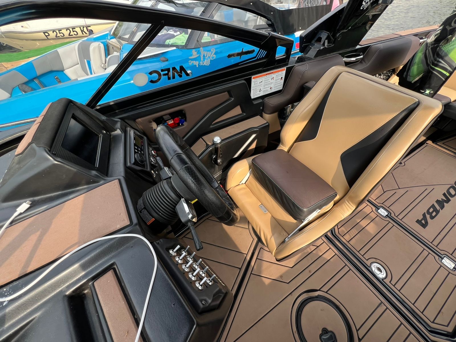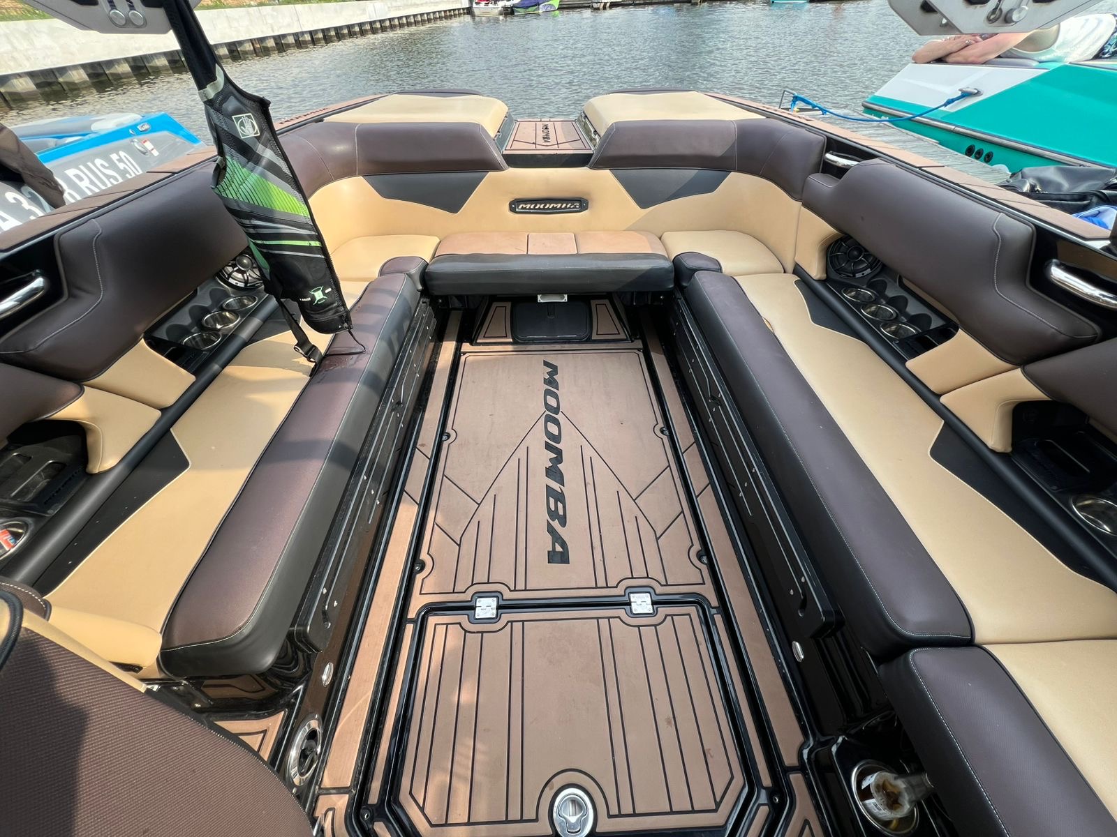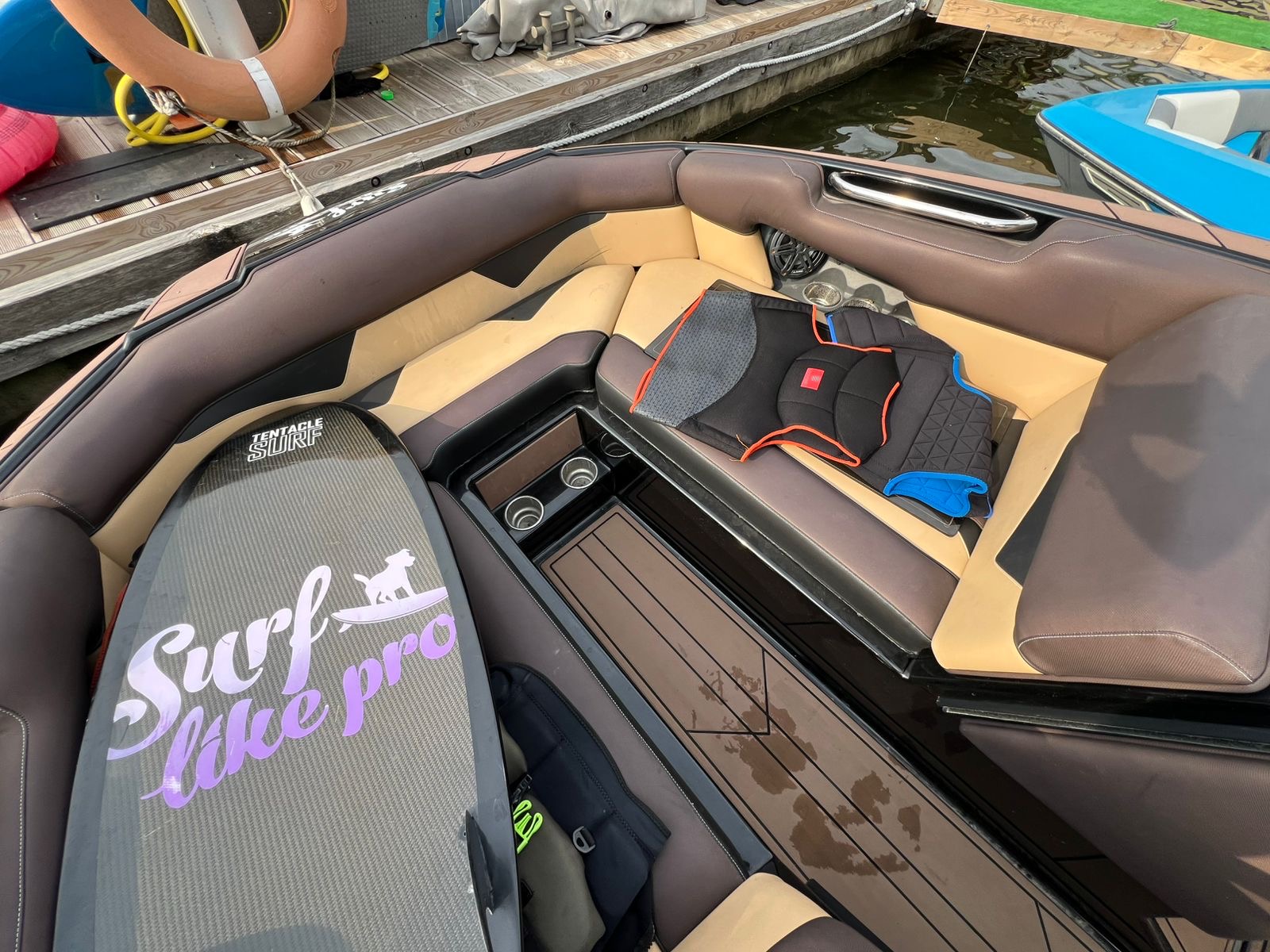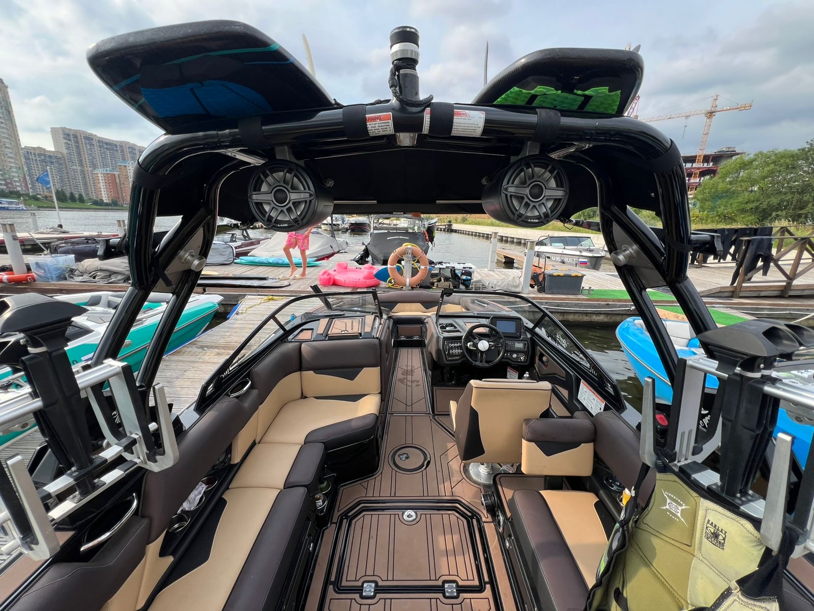 | 25-ти футовый флагман Moomba Boats в максимальной комплектации. Мощный надежный двигатель 450 л/с, серф-система с двойными пластинами и скоростной балластной системой, автоматическая настройка волны, серф-выхлоп, кормовые складные сиденья, 2000 кг. стандартного балласта, электропривод сиденья водителя, мощная акустика с колонками на тауэре 10 дюймов, ступенька на транцевой плите, выносной пульт управления акустикой. | |