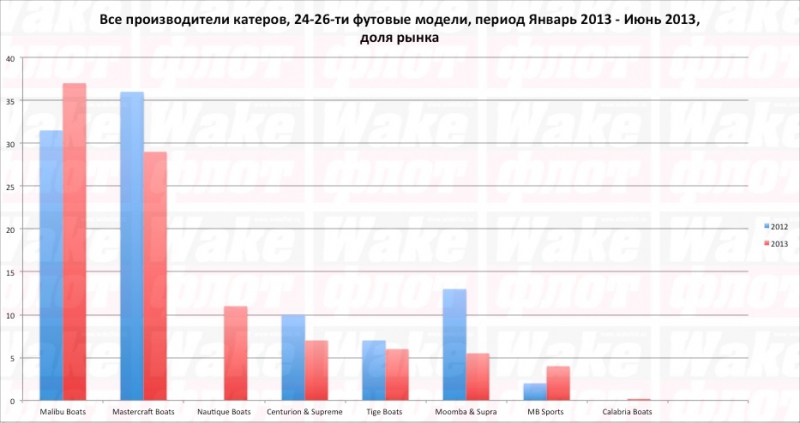 Mastercraft Boats - имеет самые печальные перспективы и самые большие потери в 2013 году. Mastercraft X-2 в 20-ти футовой катергории не может конкурировать с более универсальными и бюджетными противниками. Если от компании не будет новых моделей, в следующем году Malibu Boats может сместить со второго места Mastercraft в этом сегменте рынка.