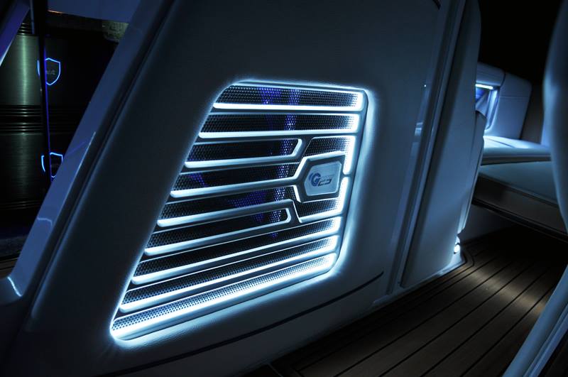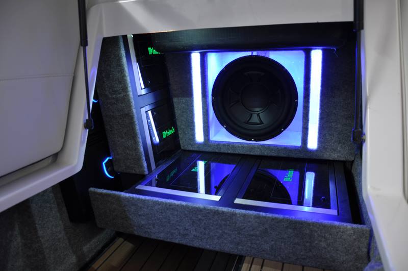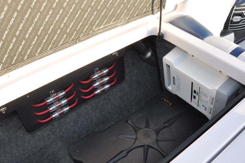 Буксировщик Naiutique G25 - флагман индустрии, флагману положено иметь все самое лучшее и мощное. Поэтому владельцы установили супер-мощную стерео-систему с двумя колонками тауэра Wet Sounds REV-410 (!)