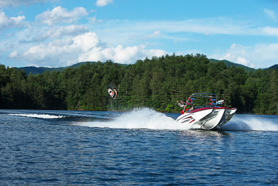 Malibu Wakesetter 22 MXZ широконосый буксировщик, созданный для того, чтобы делать волны. Этот среднеразмерный катер - официальный буксировщик Чемпионата Red Bull Wake Open.