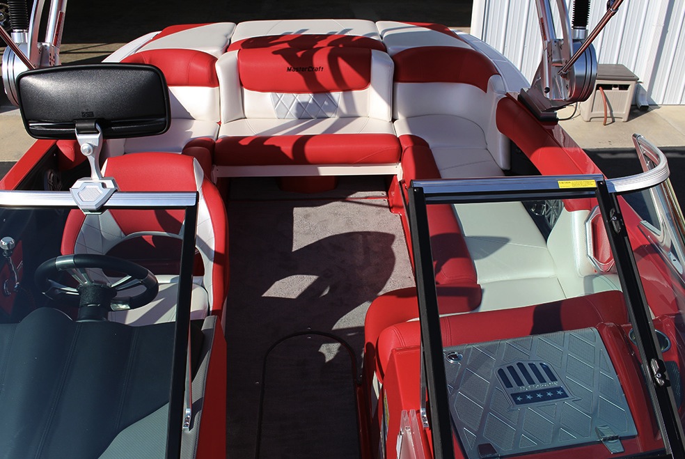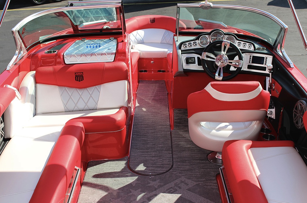 Красный - отличный цвет для отделки. Но внутри, красная отделка смотрится очень тяжеловесно. Лучше не делать палубу катера красного цвета. Отделка салона и сидений - допустимо.