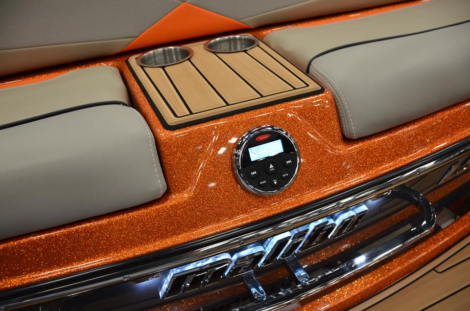 Новый Malibu 23 LSV с эксклюзивной стерео-системой Wet Sounds. Колонки тауэра Wet Sounds REV-10 имеют дополнительную подсветку. Динамики основного салона заменили на супер-мощные 8-ми дюймовые колонки Wet Sounds XS-808 с выносными твиттерами. Для сабвуфера-монстра Wet Sounds XS-XXX пришлось полностью переделывать пространство под панелью приборов, он установлен с фазоинвертером. В носовом салоне на место штатных колонок установлены усиленные Wet Sounds XS-650 того же размера. Сделана дополнительная светодиодная подсветка салона, воздухозаборников и логотипов.