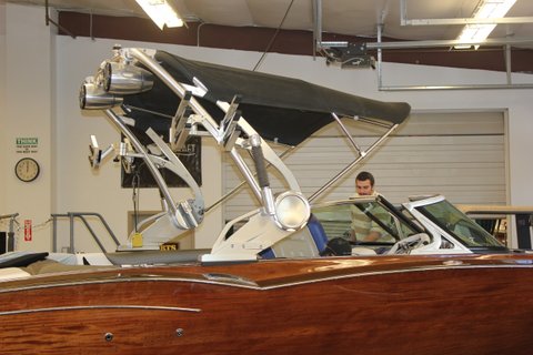 Говорят, он больше своего оригинального тезки на 30 сантиметров, но смотрится сногсшибательно. Особенно хорошо сочетание нержавеющей стали с красным деревом. Стоимость такого катера - от 250000 долларов США (в США). На выставке можно было купить его и за 250000 долларов, но цена завода примерно на 30000 долларов выше.