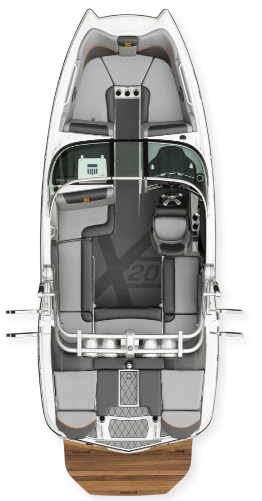 Ранее все 20-ти футовые буксировщики позиционировались как универсальные лодки - кроссоверы, за которыми, при желании, легко можно кататься слалом на водных лыжах. За новым X-20 это вряд ли получится, так как сухой вес этой (напоминаем, 20-ти футовой!!!) лодки 2177 кг. (!) Волна при таком весе будет всегда! И на лыжах лучше кататься за какой-нибудь другой лодкой.