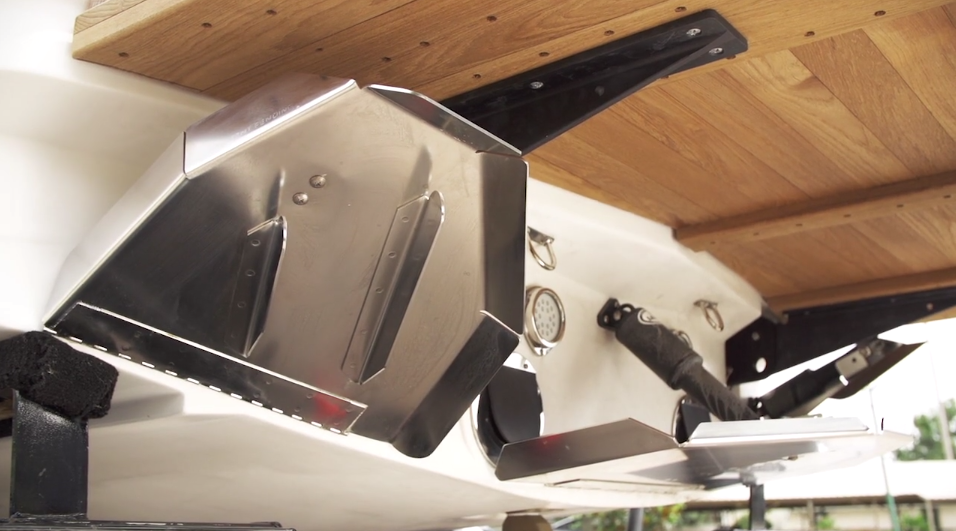 Система регулировки волны - транцевые пластины Surf Tabs GEN2, доведенные до ума. Эта система способна менять волну не хуже SURFGATE. Для улучшения левой волны добавлены специальные плавнички на левую пластину SURF TABS:
