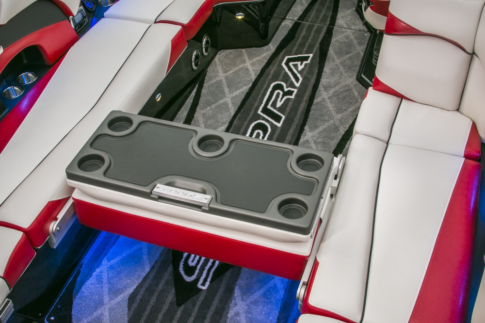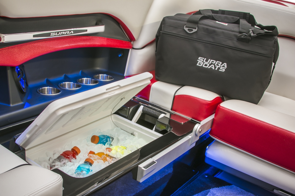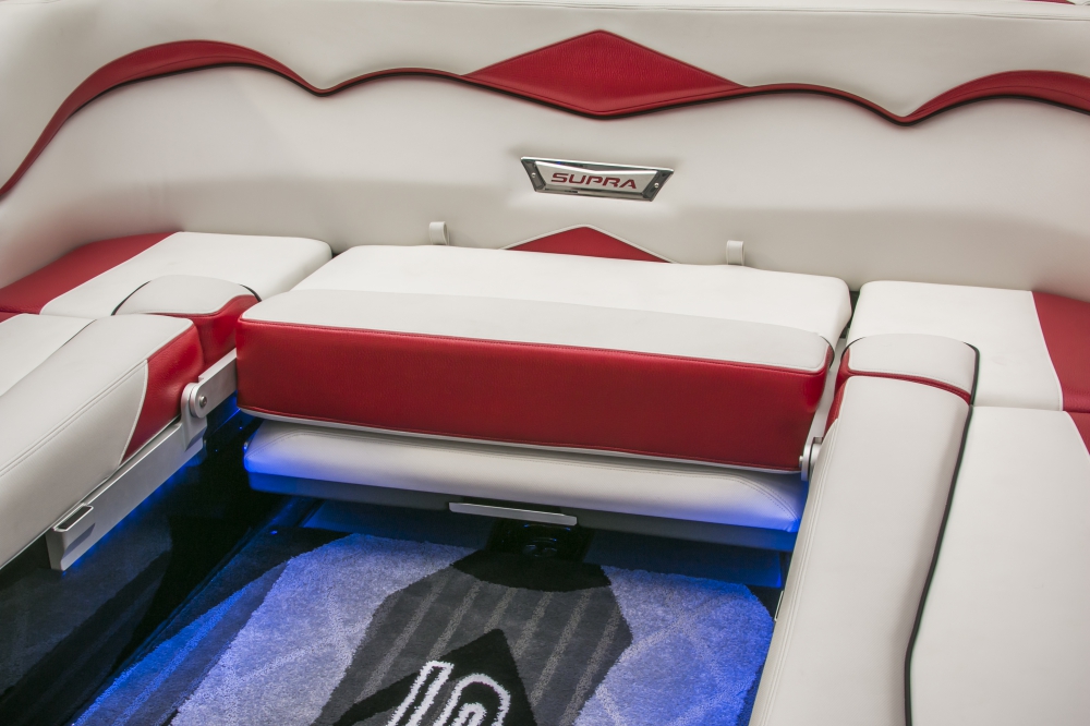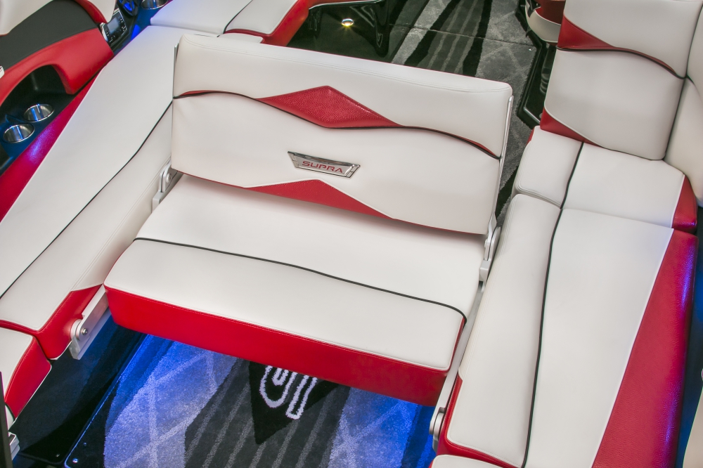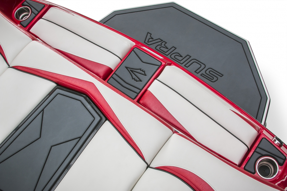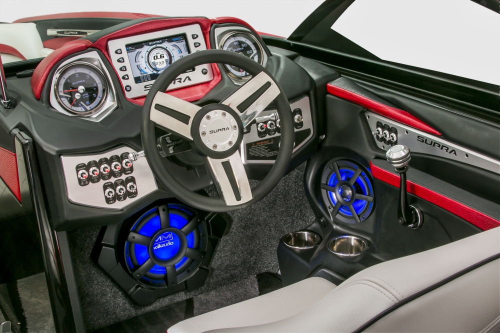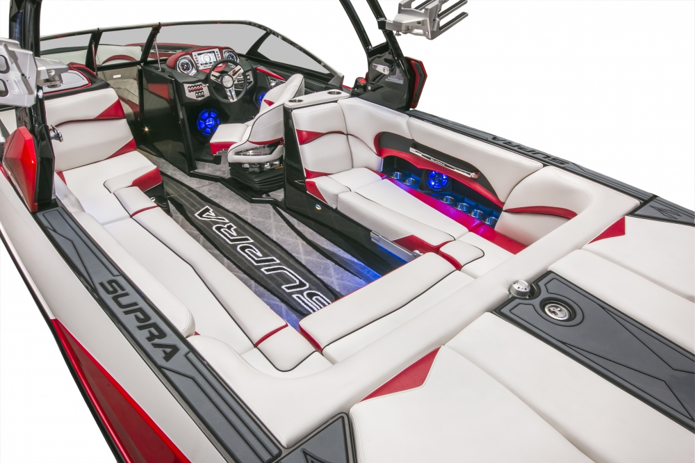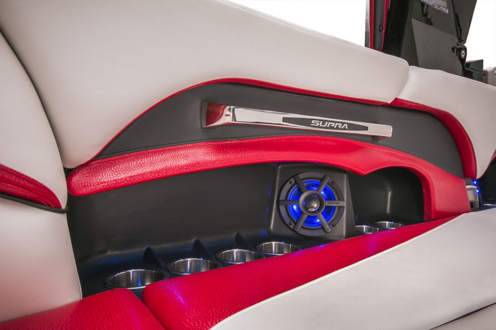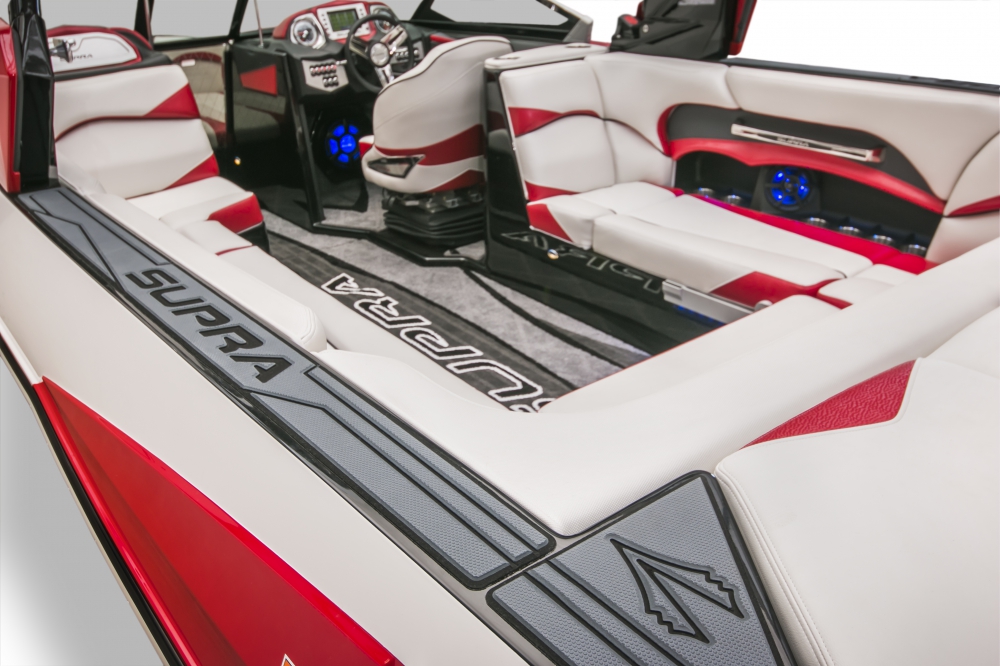 Еще раз хотелось бы отметить окраску корпуса. Некоторые компании на этом этапе имеют просто провальные результаты (например Centurion Boats). К Supra Boats это не относится. Выбранный стиль с узнаваемыми деталями апробирован на предыдущей премьере - Supra SC.