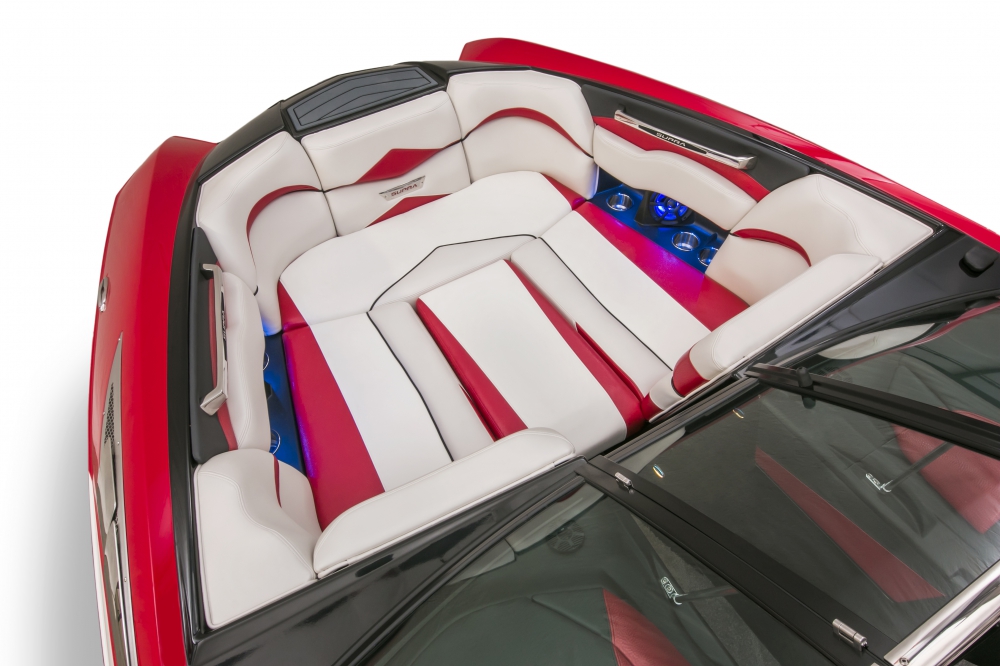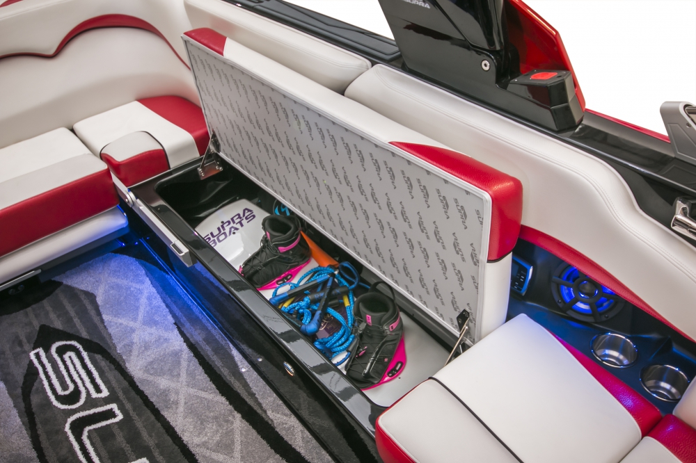 Система регулировки волны с длинным, но очень простым названием SSSS может быстро переключать сторону волны. Стандартная балластная система 1452 кг.(!!!) Вам не придется придумывать, куда разместить дополнительный балласт, катер может делать профессиональную волну даже в стандартной комплектации, сразу за воротами завода: