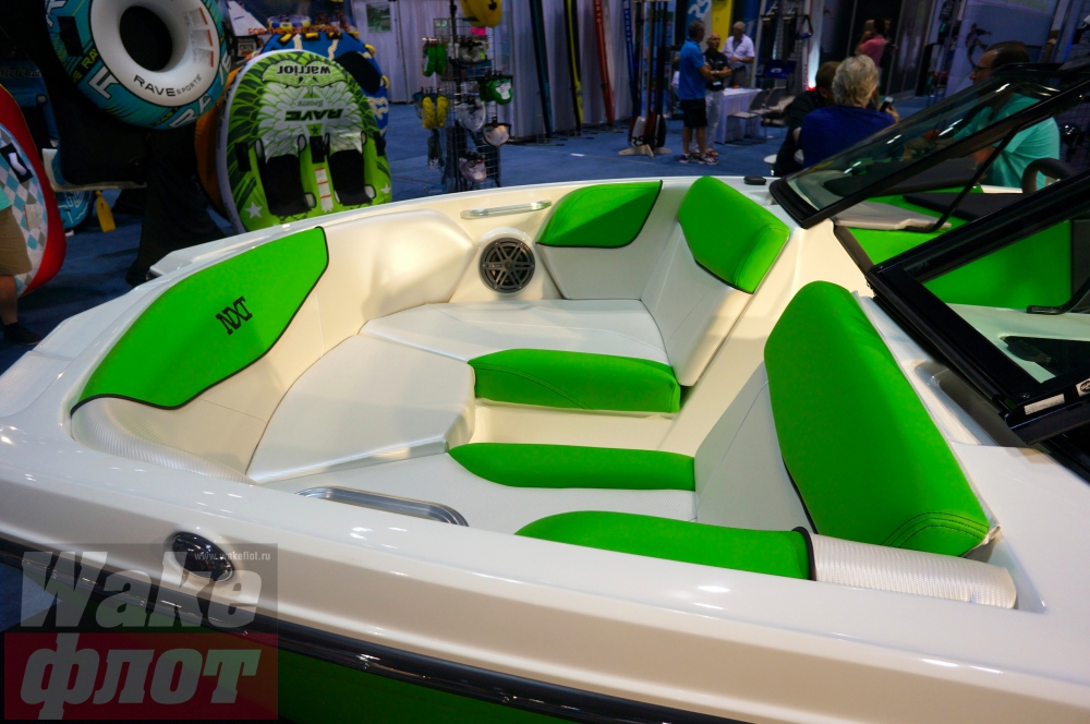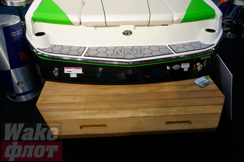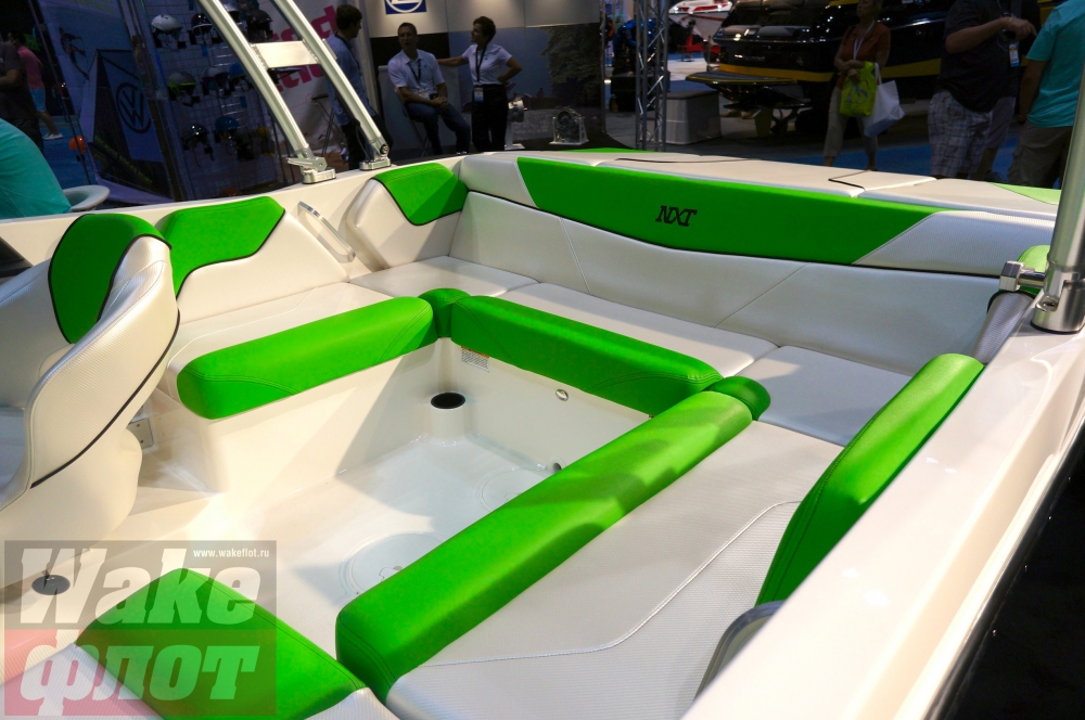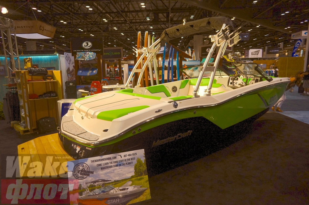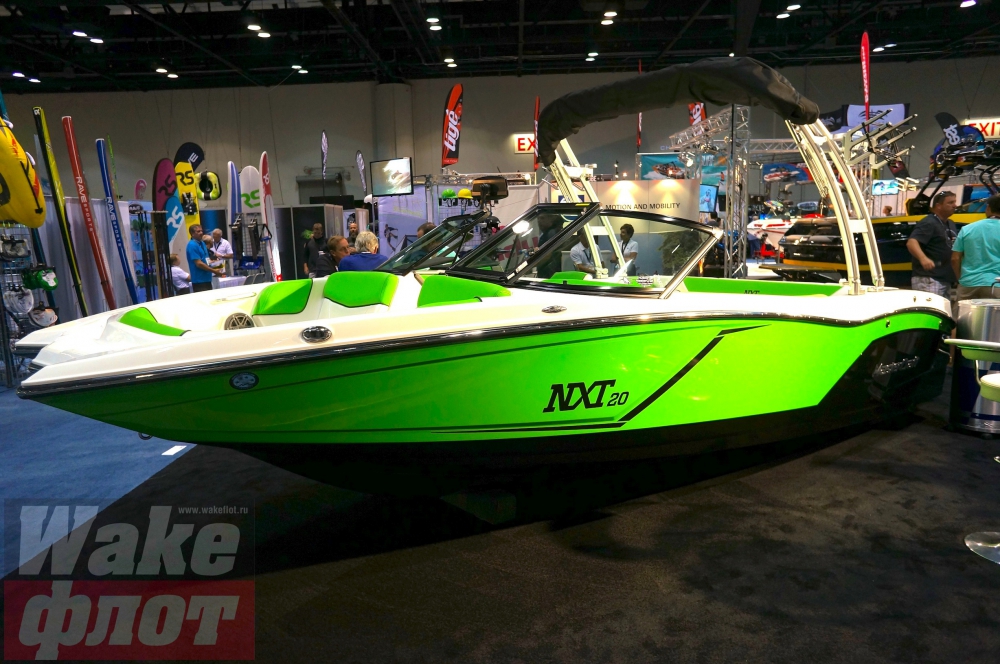 Mastercraft NXT - широко разрекламированный 20-ти футовый бюджетный буксировщик компании Mastercraft Boats. В этом году компания представила два компактных катера разных ценовых полюсов. Напротив Mastercraft NXT на стенде компании стоит небюджетный Mastercraft X-20.