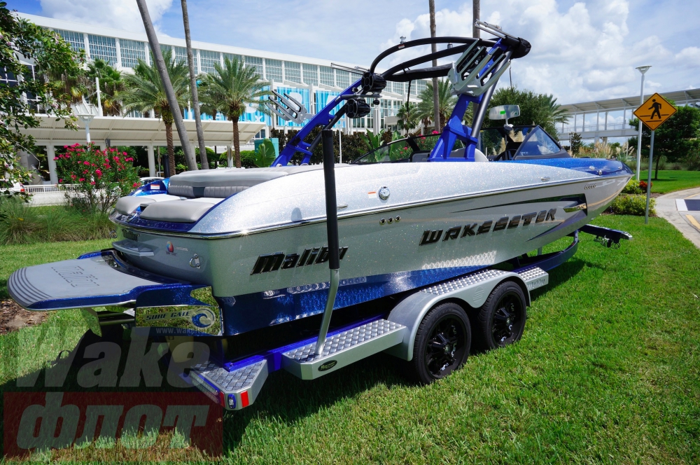 Эффектный Malibu Wakesetter 22 MXZ нового модельного года. Стоит отметить новую эксклюзивную стерео-систему Wet Sounds: