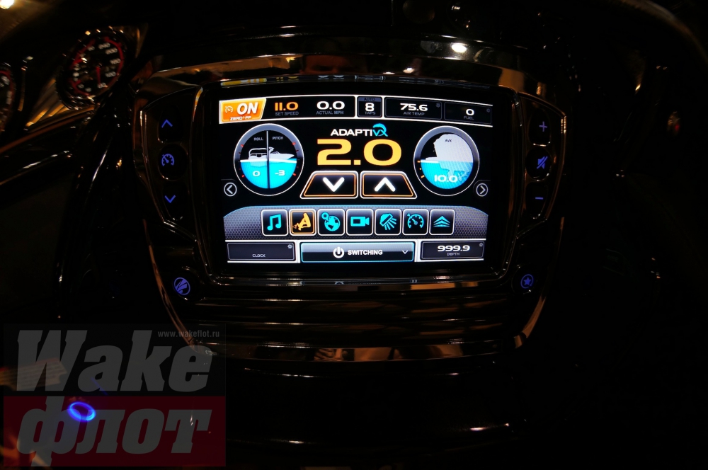 Интерфейс адаптивного шейпера выглядит так, на дисплее полная визуализация положения шейпера и катера на воде. Можно выбирать положения от 1 до 10-ти: