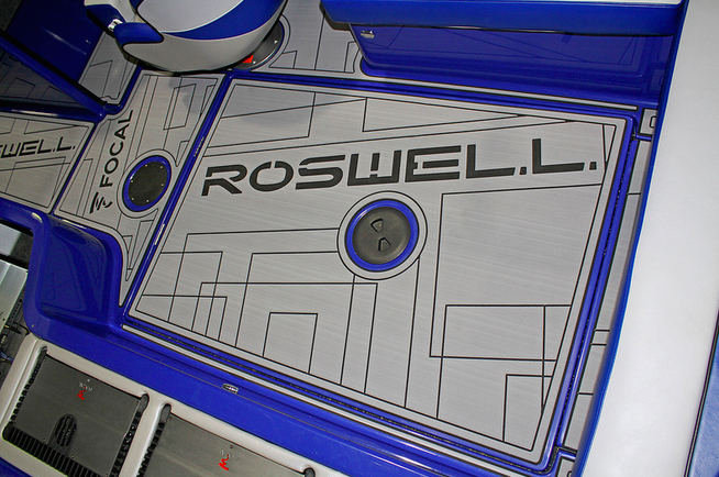 В целом, этот катер ничем не отличается от серийной лодки, за исключением большого количества логотипов Roswell: