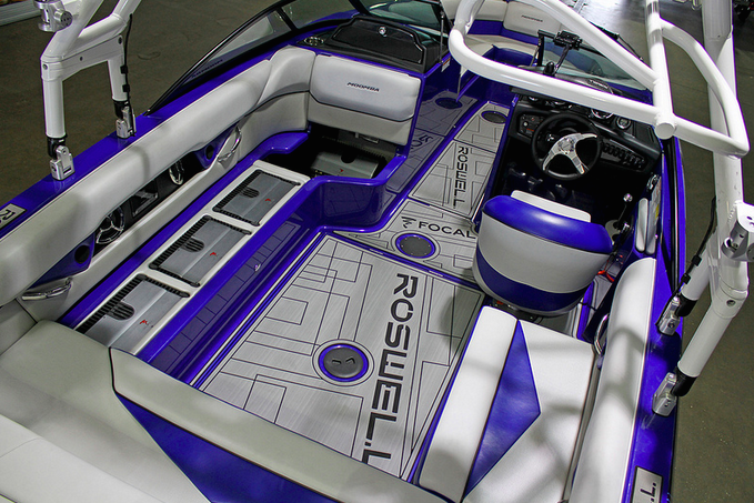 Основным отличием от стандартного катера является нескользящее покрытие палубы с логотипами производителя: