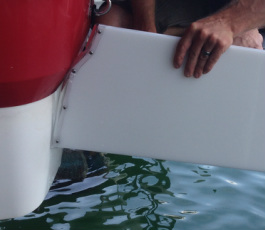 Компания из Теннесси "Wicked Wakesurf Designs" предлагает специальные эффективно работающие насадки на транцевую плиту, которые легко установить. Насадка устанавливается с противоположной стороны, она смещает корму в сторону, очищая и увеличивая волну.