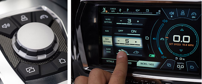 Сенсорный дисплей теперь дополняет джойстик недалеко от ручки дросселя, объединяющий функции панели управления, владельцы автомобилей BMW наверняка оценят эту новинку. Но решение спорное. Водителю все равно придется отвлекаться от акватории.