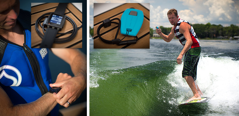 Самым интересным гаджетом новых буксировщиков Nautique должен был стать модуль дистанционного управления волной Surf Select, который имеет два вариента управления - дистанционный пульт или контрольный дисплей, закрепляемый на запястье, куда выводится вся информация о движении катера. Используя специальное приложение для "умных часов" Pebble Watch вы сможете регулировать скорость, громкость звука, переключение волны и управлять другими функциями вашего катера удаленно.
