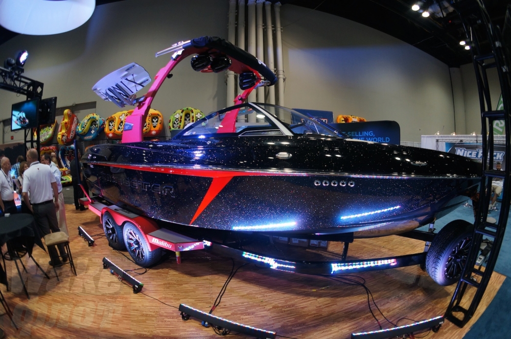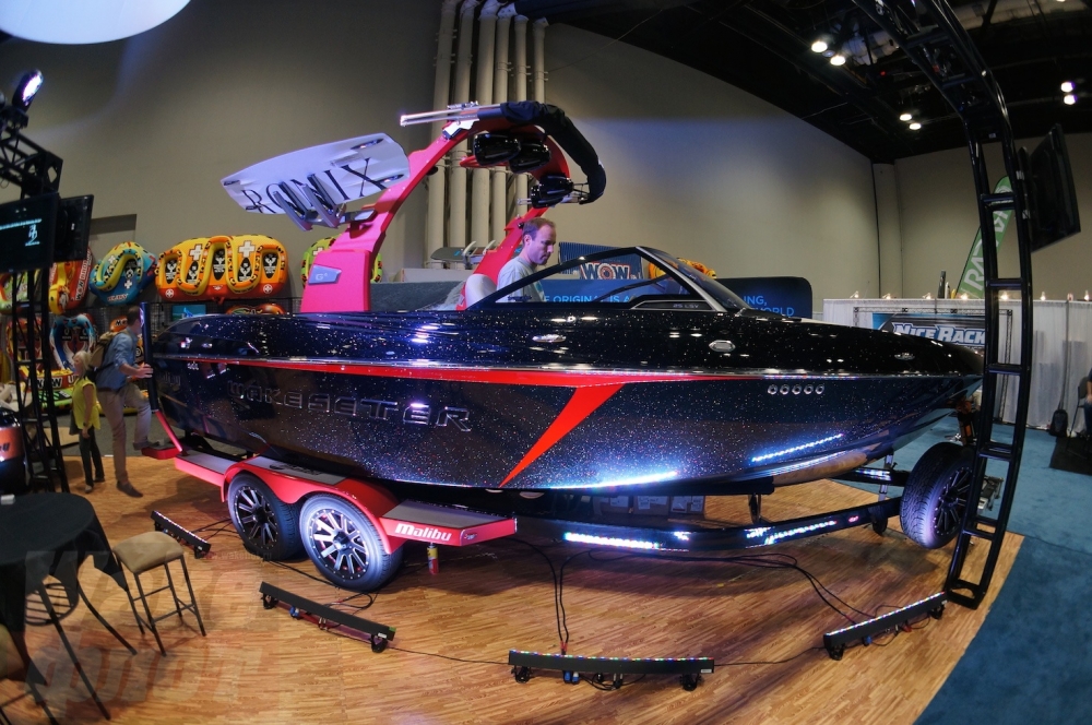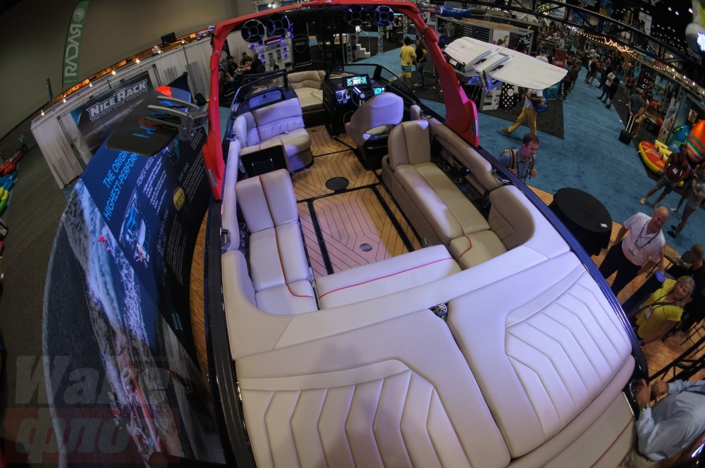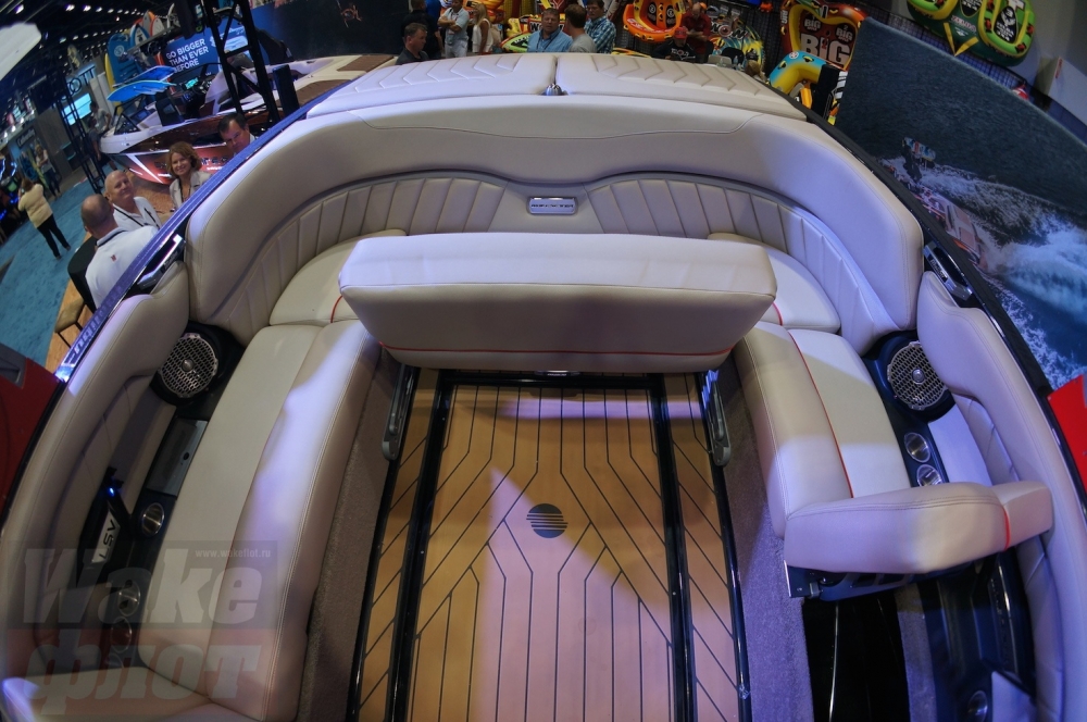 Лодка является увеличенной копией Malibu 23 LSV и кLkроме эффектной окраски и потрясающего тауэра красного цвета не может похвастать никакими инновациями.