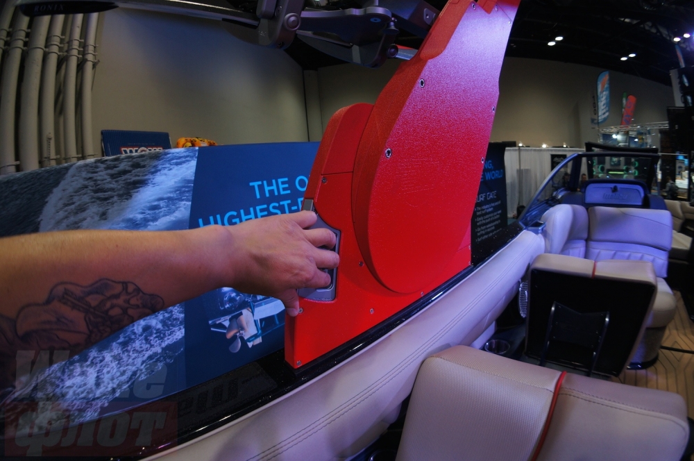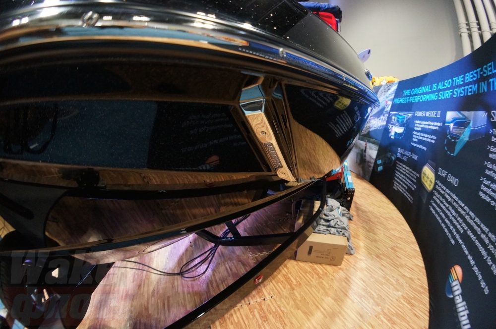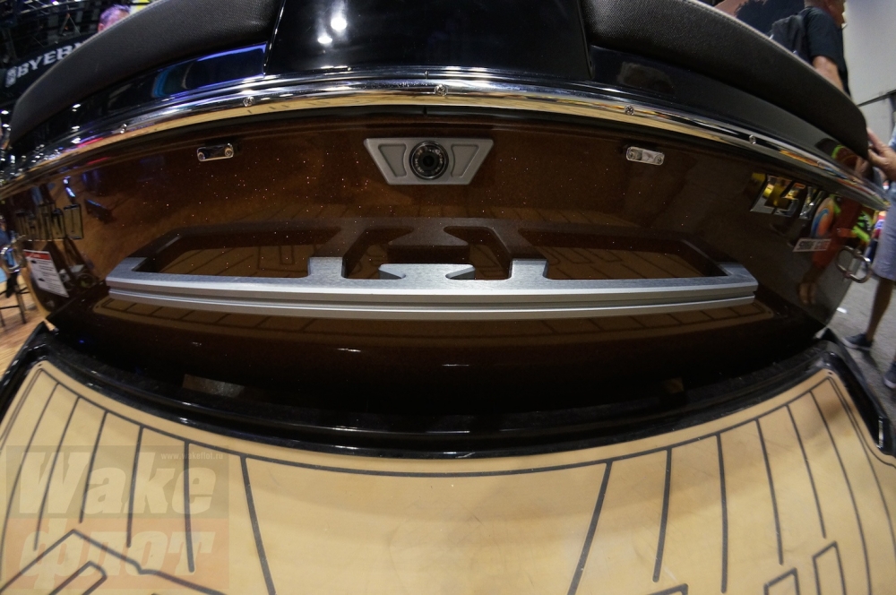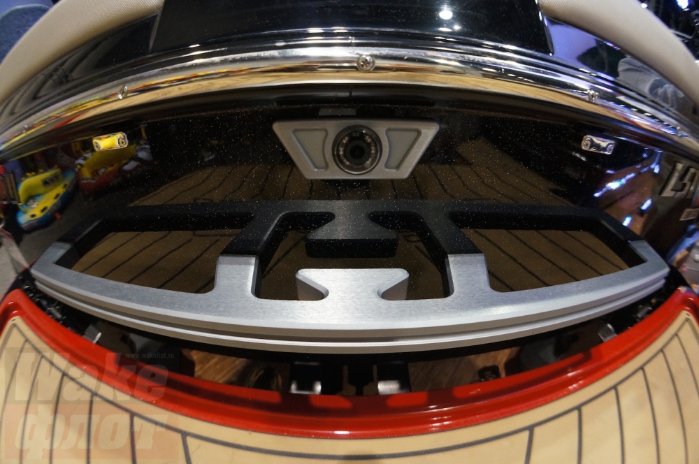 Вопреки расхожим заблуждениям (типа глубокий киль делает волну и т.п.), корпус на корме почти плоский, катер оснащен системой переключения волны Surf Gate: