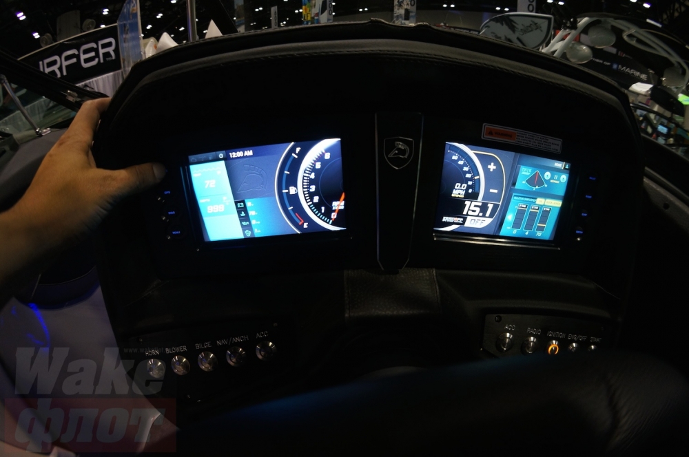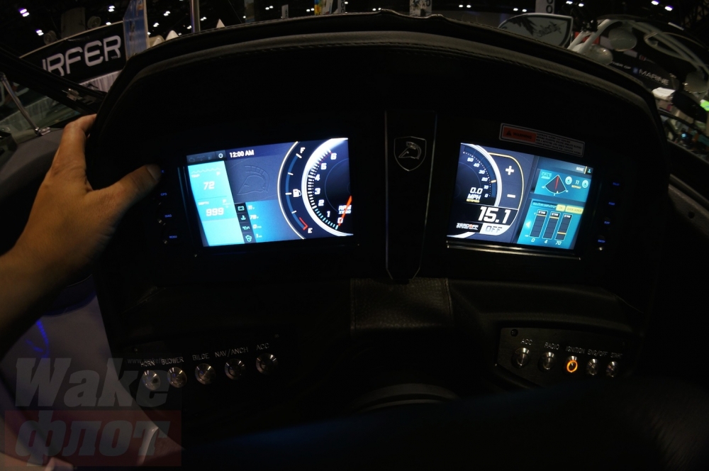 Из досадных недоразумений еще хочу обратить внимание на новую панель управления с двумя сенсорными экранами, при возврате в главное меню, центральный электронный дисплей «переезжает» на соседний экран. Выглядит эффектно, но стоит напомнить, что сенсорные панели управления – настоящий бич для дилерских компаний, стоят дорого, диагностировать сложно, и такую лодку точно нужно хранить в теплом помещении зимой.