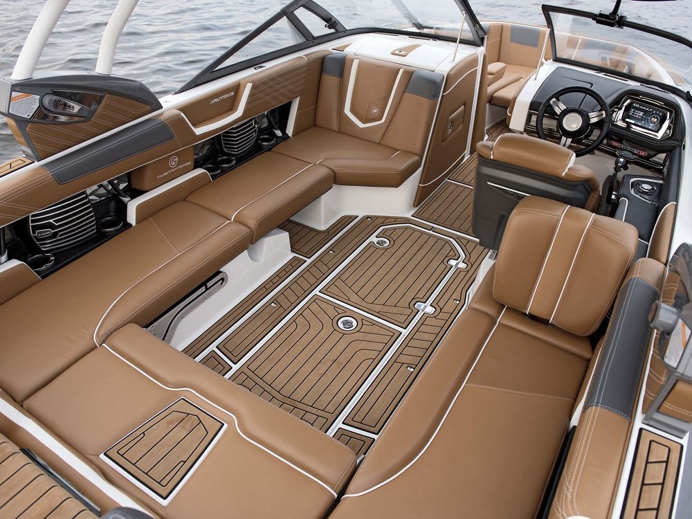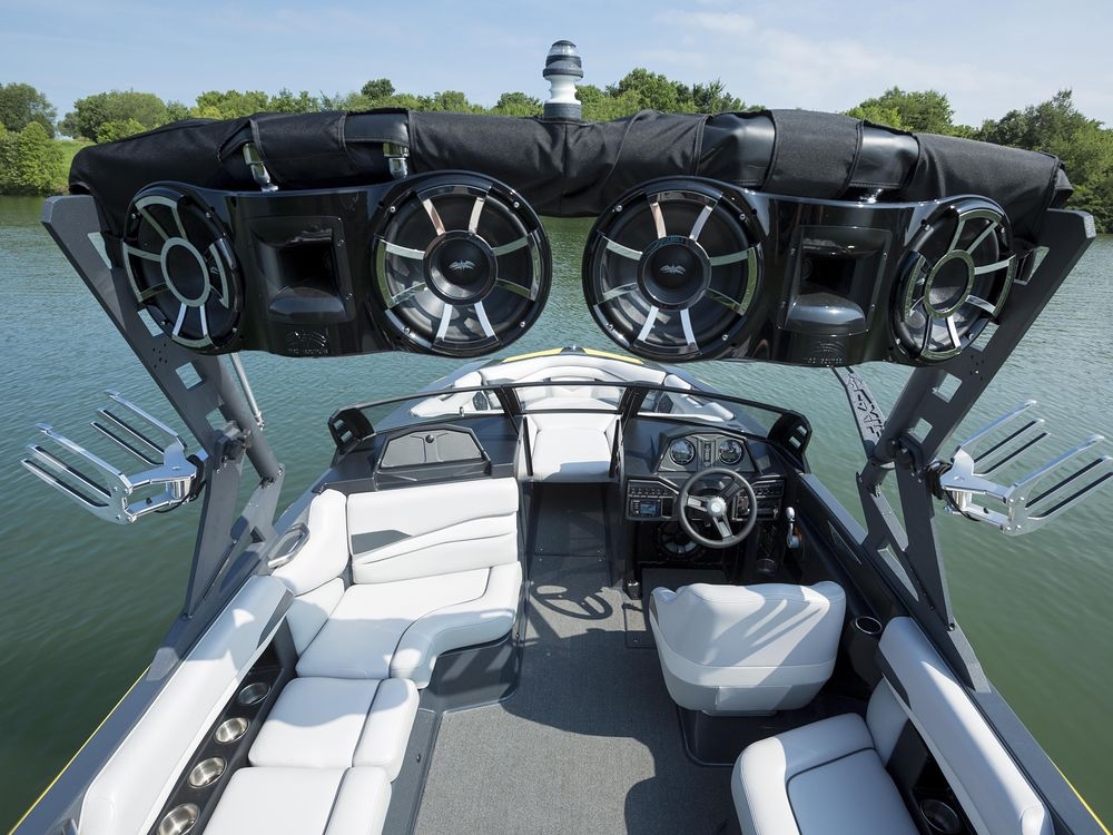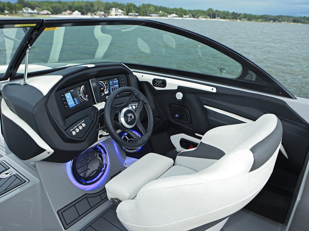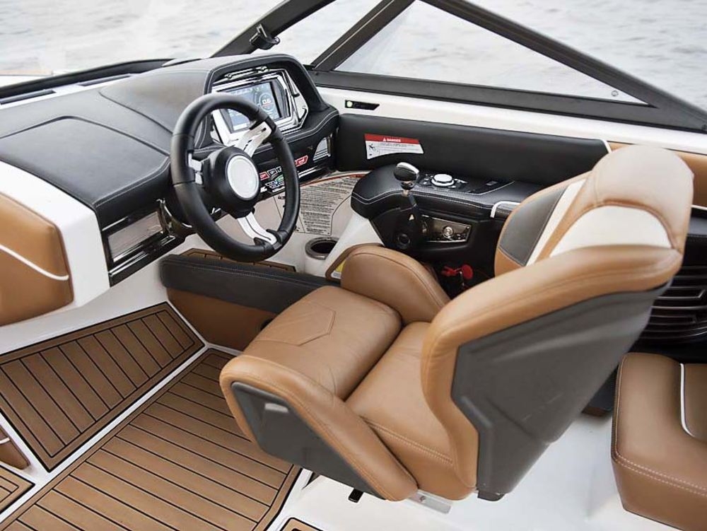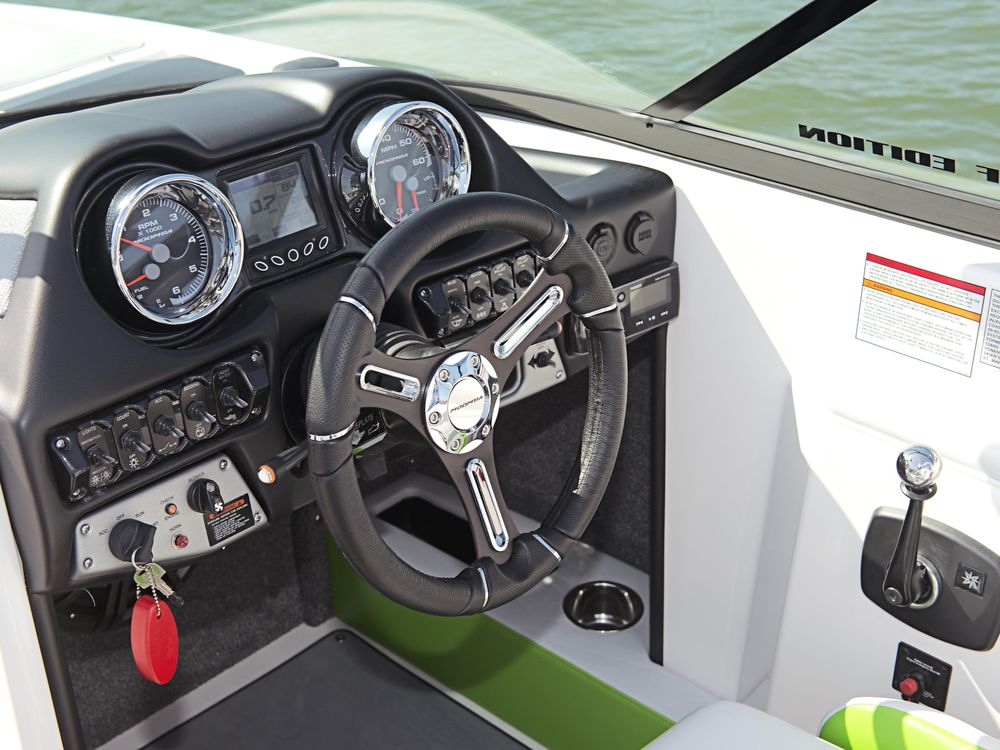 Самое большое обновление в 2016 году - панель приборов. Она такая же простая, но улучшен дизайн и переключатели. Катер имеет неоспоримое преимущество для вейксерфинга, если на него установлена система переключения волны SURFGATE. Тауэр отличного дизайна и является визуальным продолжением корпуса, что редко встречается на бюджетных лодках.