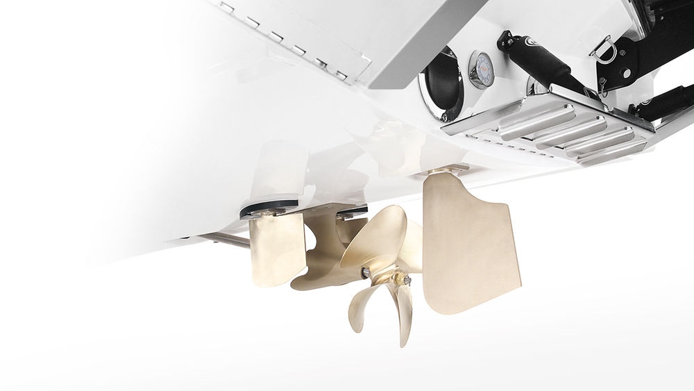 Система устроена просто - два дополнительных рулевых пера небольшого размера установлены перед винтом, с двух сторон от опоры вала. Они поворачиваются одновременно, обеспечивая лучшую управляемость в любом направлении.