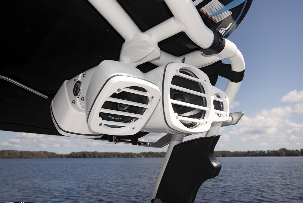 Новая акустическая система Centurion Boats имеет несколько направленных динамиков для обеспечения полного звукового покрытия салона. С помощью дополнительного контроллера можно регулировать уровень громкости по зонам.