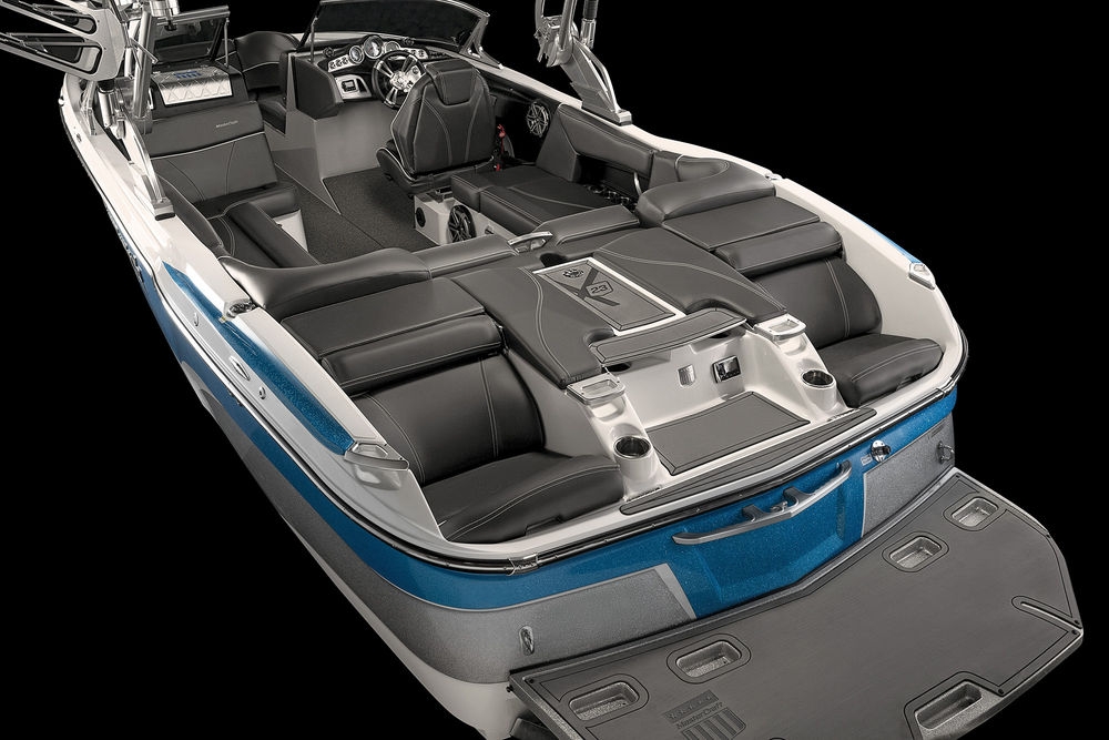 Потрясающие удобные сиденья на корме на новом Mastercraft X-23 обеспечивают высочайший уровень комфорта и безопасности для пассажиров-наблюдателей.