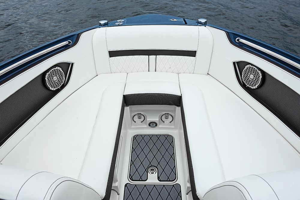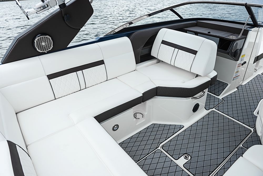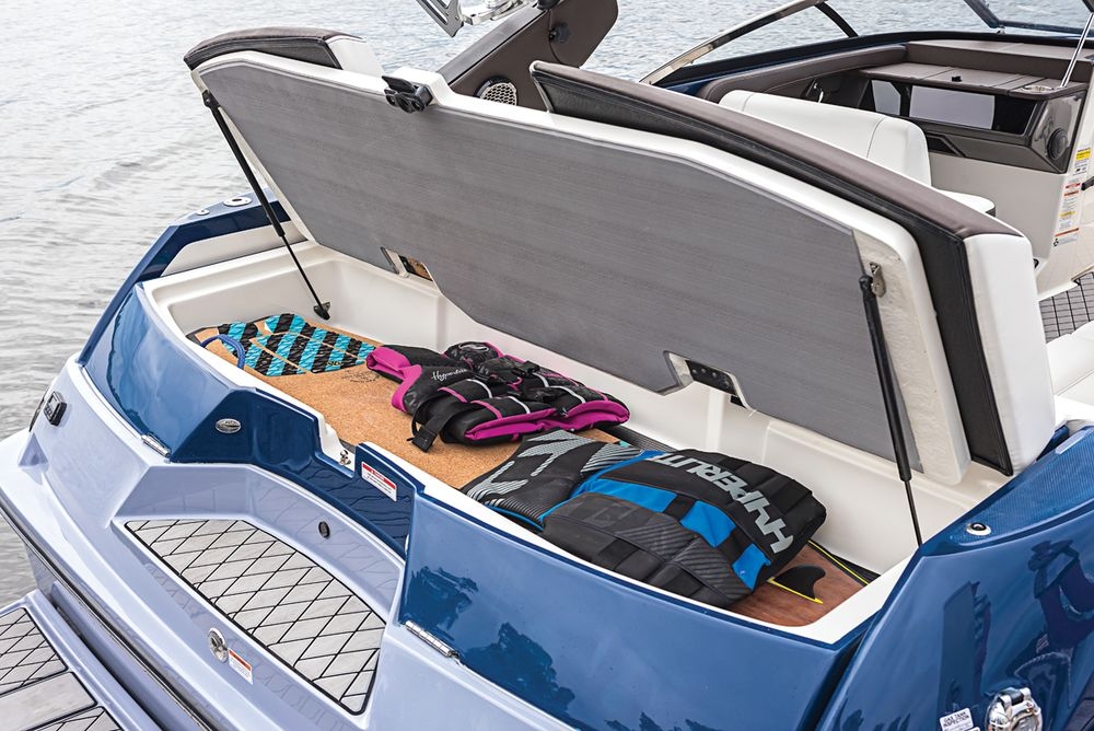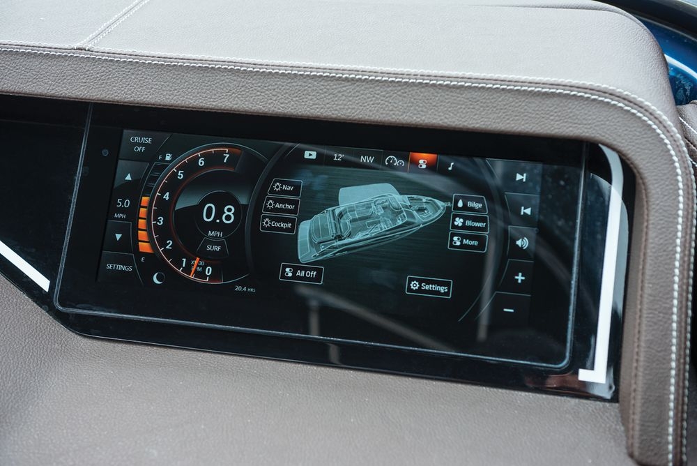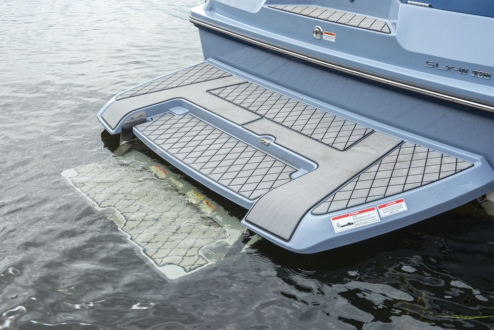 И все бы ничего, прошла бы эта премьера незаметно. Но! Этот катер оборудован серф-системой WakeTech собственной разработки компании Sea Ray. И если конкуренты просто купили лицензию на Surf Gate у Malibu Boats, инженеры Sea Ray разработали собственную систему переключения волны, которая неплохо работает.