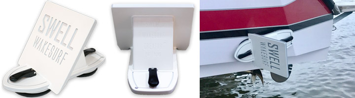 Эти вейксерф-шейперы используют общий принцип смещения кормы катера от продольной оси во время движения и крепятся к кормовой части катера либо на присосках, либо на "липучке" (Eight 3).