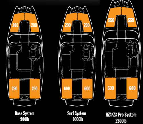 Комбинированная балластная система состоит из водных балластов и стальных балластов, стальной балласт обычно размещают под сиденьями салона или отсеках, что позволяет очень точно настроить волну.