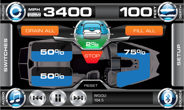 На катерах, оснащенных сенсорными системами управления или информационными дисплеями, время наполнения балласта калибруется и можно установить достаточно точно время работы увеличенной балластной системы для визуализации заполнения балластных емкостей.