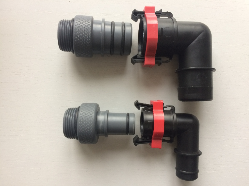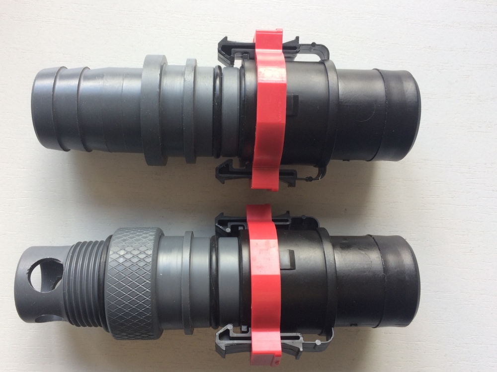 Заливной (сверху) и отливной (снизу) коннекторы балластной системы: