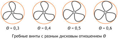 Дисковое отношение - это отношение суммарной площади лопастей гребного винта к площади диска винта. Например, для большей плавности движения используют гребной винт с большим дисковым отношением, например пятилопастной гребной винт.