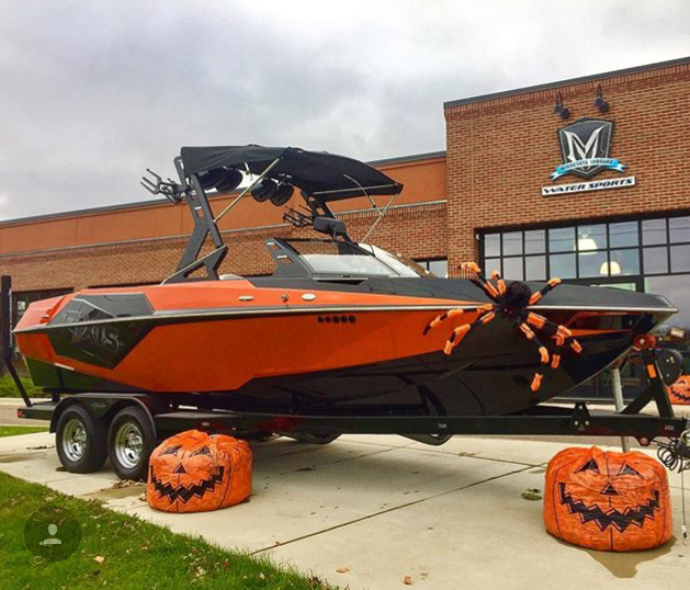 Американцы очень любят Хэллоуин. Каждый год производители размещают праздничную рекламу с характерными рисунками катеров в хэллоуиновской раскраске, а некоторые увлеченные люди даже заказывают себе черно-оранжевые лодки, чтобы было на чем объезжать соседей в поисках сладостей.