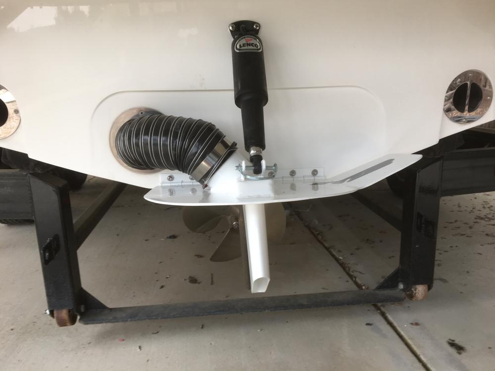 Например Centurion Boats придумали выхлоп, который частично рассеивается по трим-пластине: