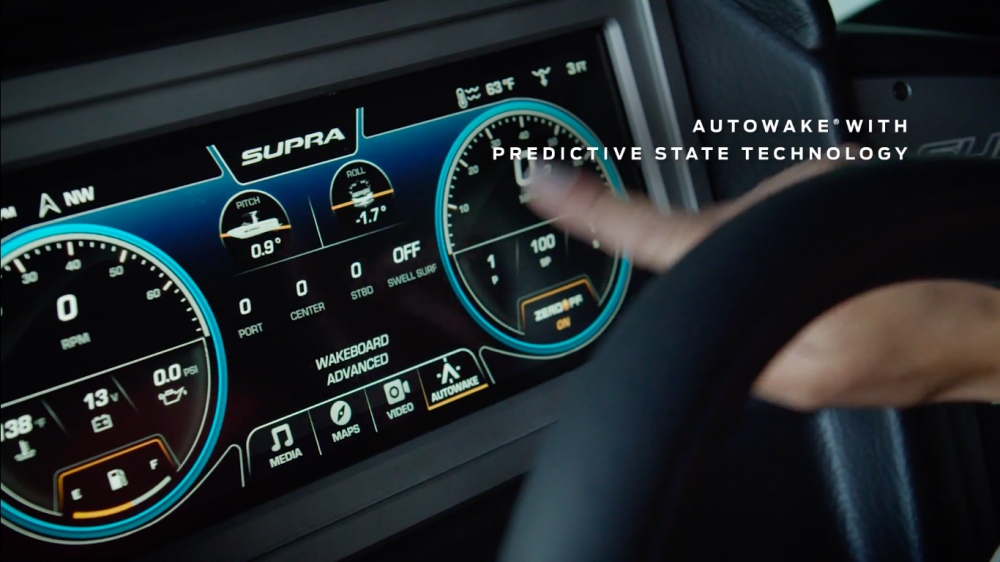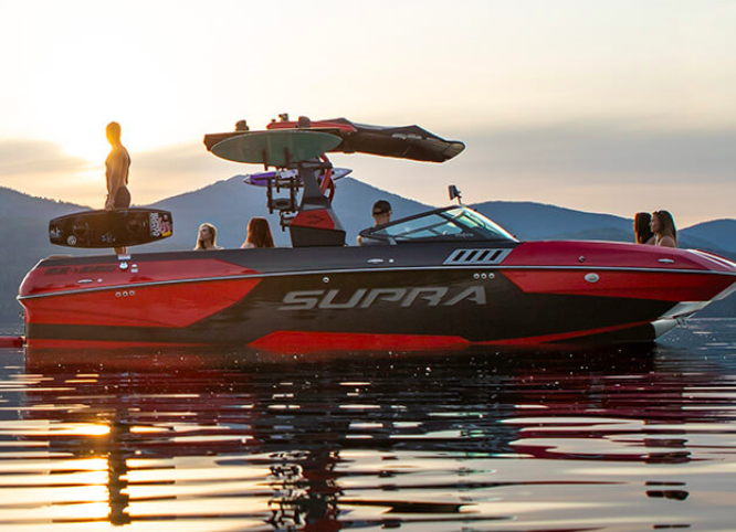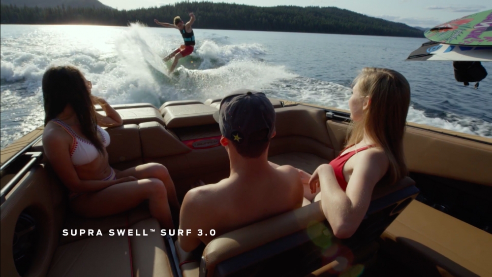 За серфинг отвечает автоматическая система управления волной Supra AUTOWAKE и серф-система SWELL. Катер Supra способен контролировать положение корпуса независимо от перемещения пассажиров