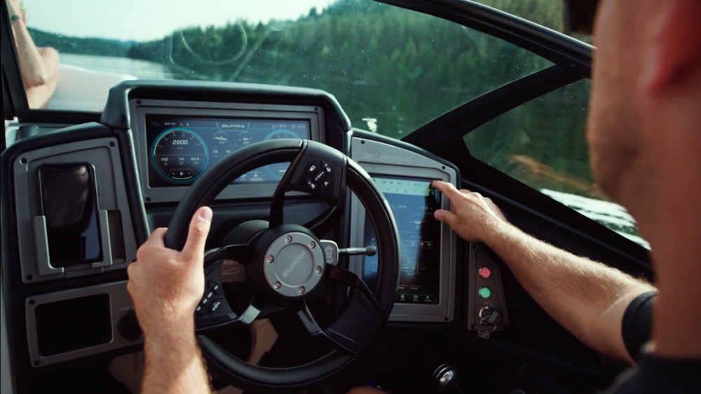 Только у новых Supra - дополнительный пассажирский сенсорный экран для управления дополнительными функциями катера со стороны пассажиров.