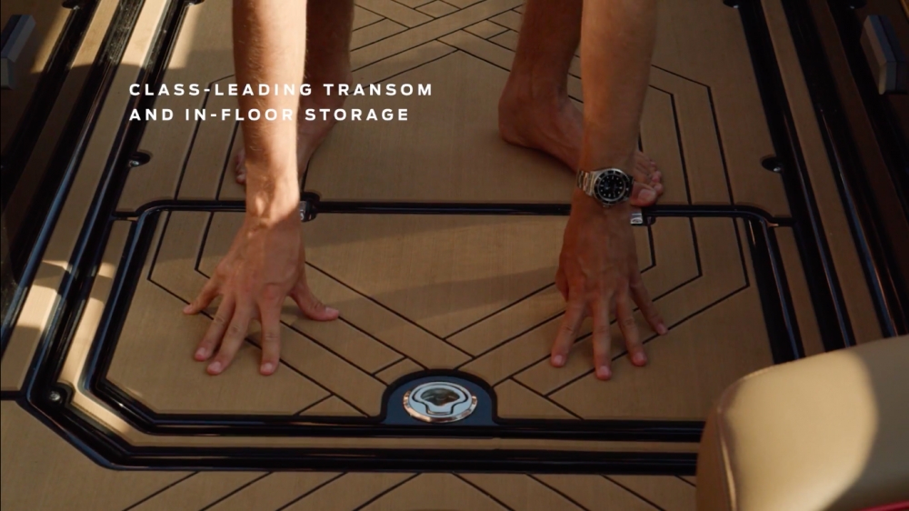 На корме есть широкий проход на транцевую плиту (его можно закрыть специальной подушкой) и боковые спинки на крышках моторного отсека для комфортного размещения пассажиров-наблюдателей.