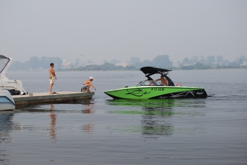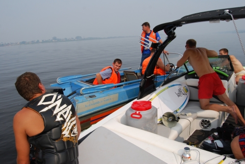 Наш катер привлек местный ГИМС, который гоняется за нарушителями на лодке с двигателем 30 л.с.)