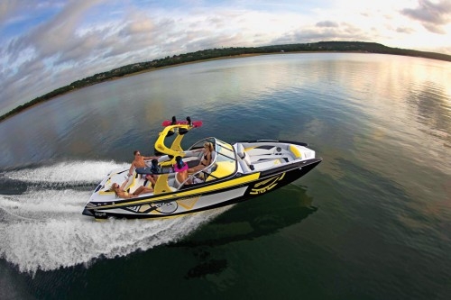 Большой 23-футовый корпус в сочетании с заводской балластной системой 635 кг и эргономичным салоном ставит эту лодку в ряд лучших катеров для вейкбординга.