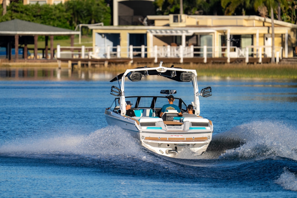 Катера-кроссоверы отличаются специальной формой корпуса с плоской кормовой подводной частью, чтобы при катании на водных лыжах была минимально возможная волна.