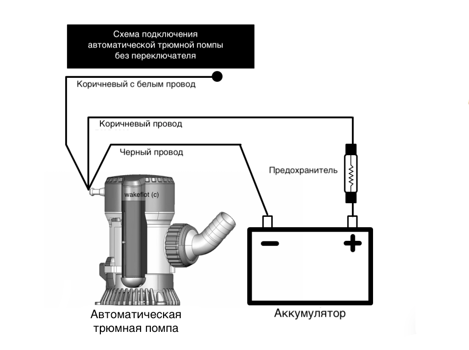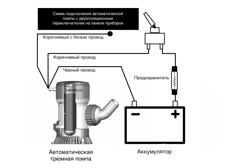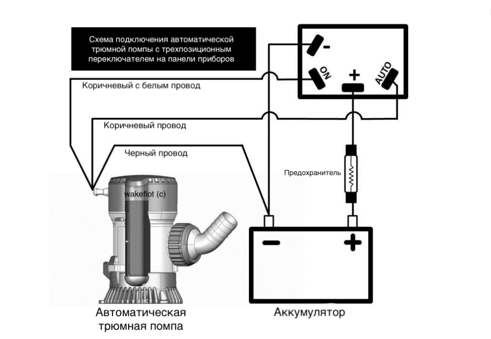 На большинстве лодок трюмная помпа по умолчанию работает в автоматическом режиме и кнопка принудительного включения выведена на панель приборов, но мы рассматриваем общий случай, когда кнопка не установлена.