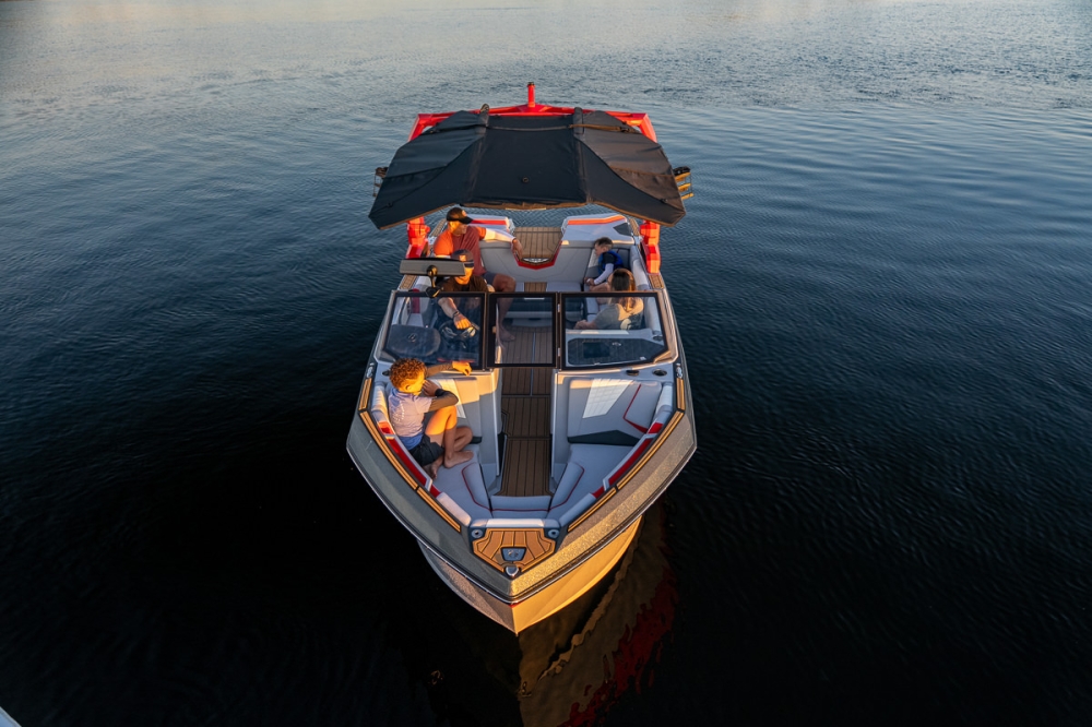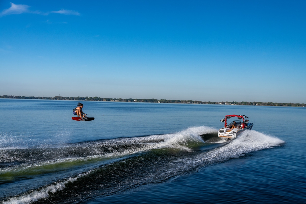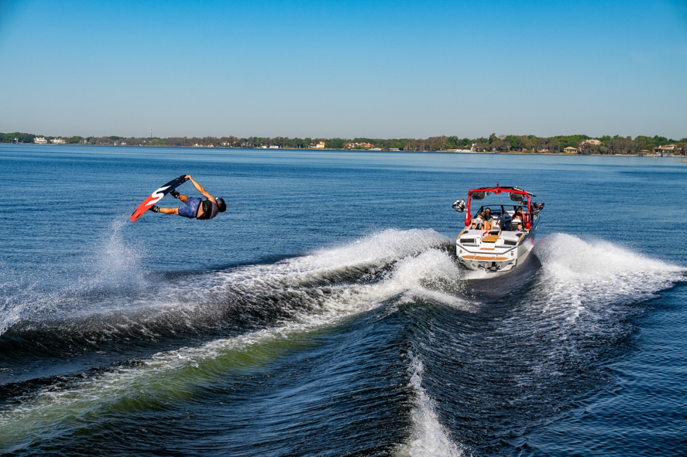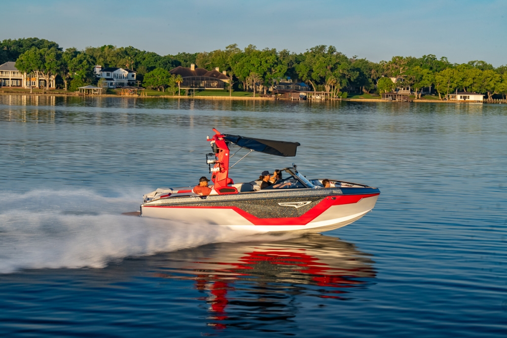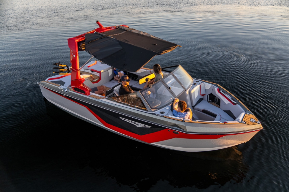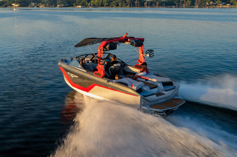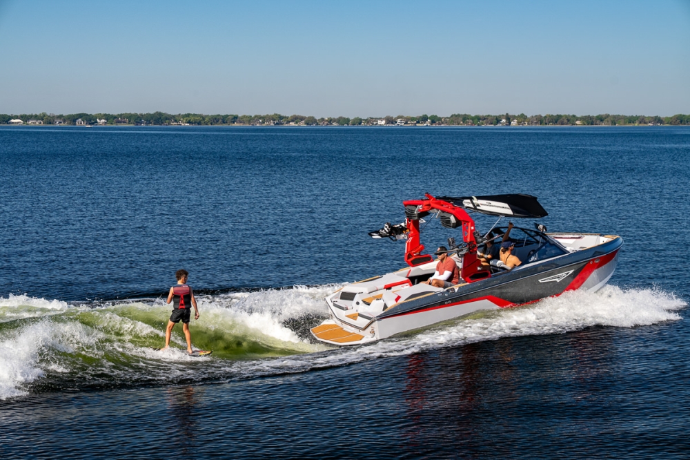 Позиционируется новый Super Air Nautique S21 как катер-буксировщик для вейксерфинга и вейкбординга и по внешнему виду его легко узнать на воде по внешности с фамильной ДНК от флагманской серии Paragon.