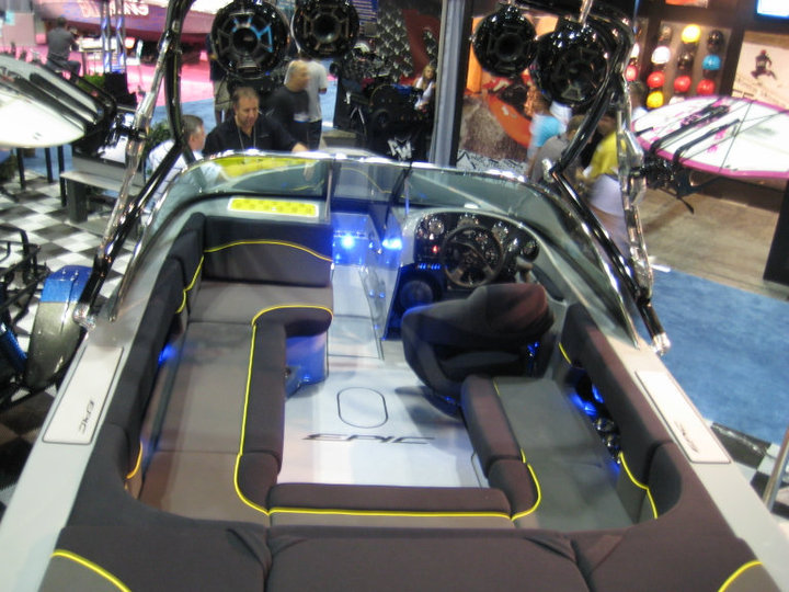 От старшего брата, Epic 23v, катер получил музыкальную систему на корме с 8-ми динамиками. Но самое интересное в Epic 21v - это салон из неопрена(!). Компания Epic Boats не боится экспериментировать и многие опции катеров Epic не доступны больше ни на одном буксировщике. Катер легко отличить на воде по характерному Epic-корпусу.