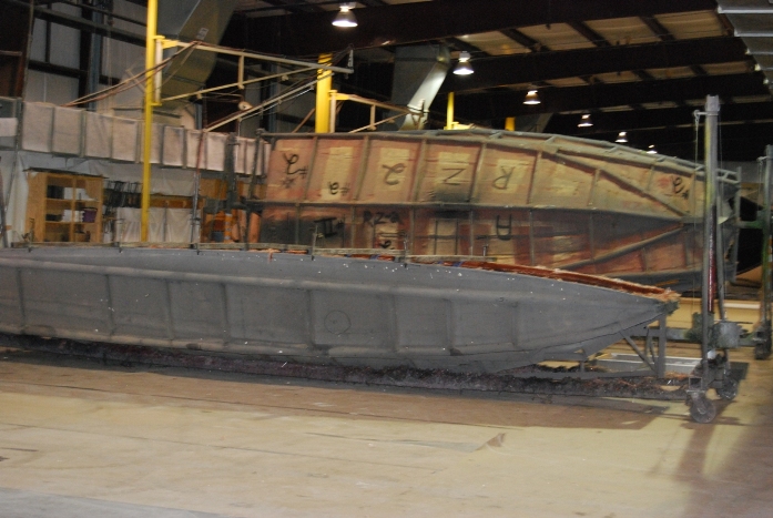 Сначала на дно корпуса монтируются руль, плавники, опора ведущего вала, затем корпус переворачивают и отправляют в сборочный цех: