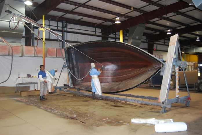 Цех чистовой отделки корпусов. Как на автомобильном конвейере, каждая лодка проделывает по цехам завода 12-ти дневный путь: