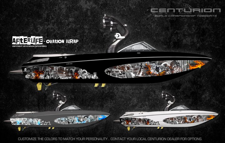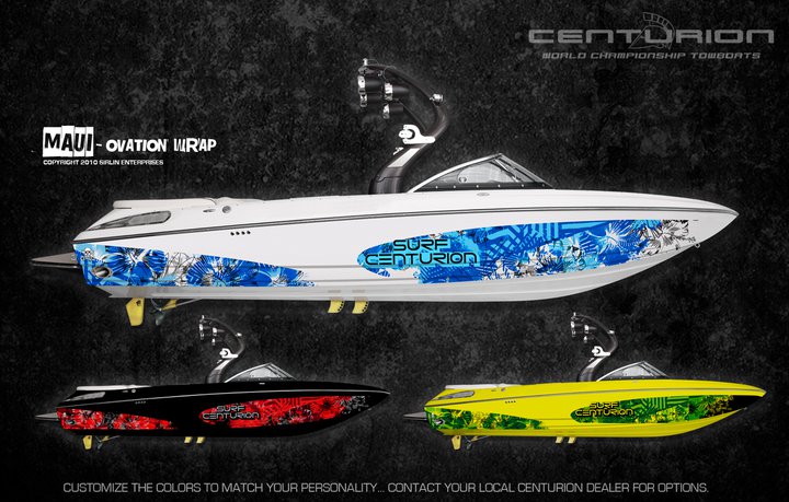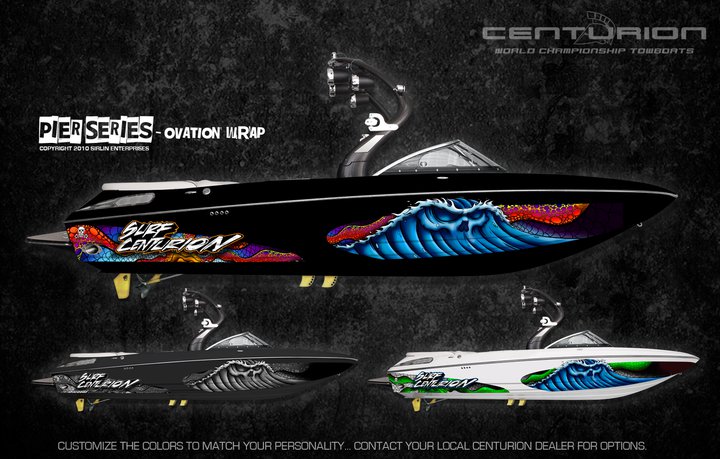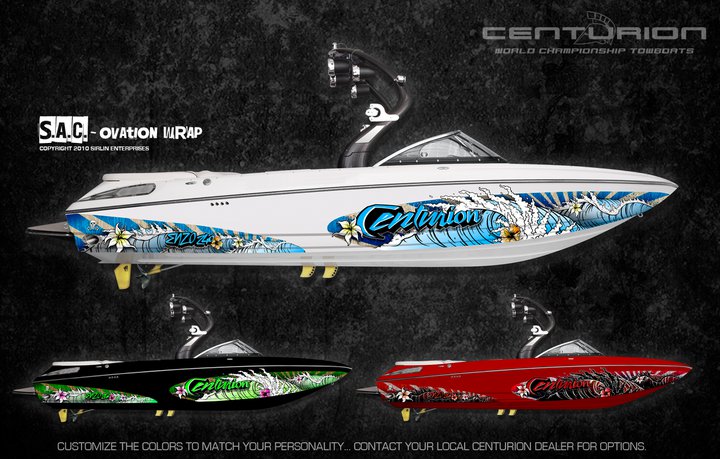 предлагает нанести на корпус индивидуальные рисунки непосредственно на заводе Centurion Boats.
