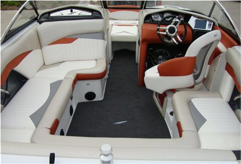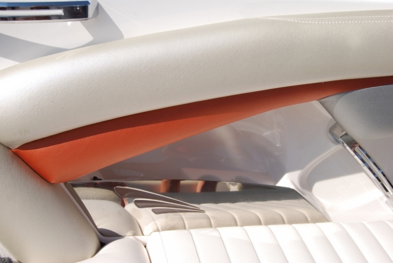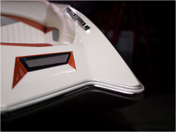 Корпус катера - жемчужного серебряного цвета, цвета отделки - оранжевый, либо красный.